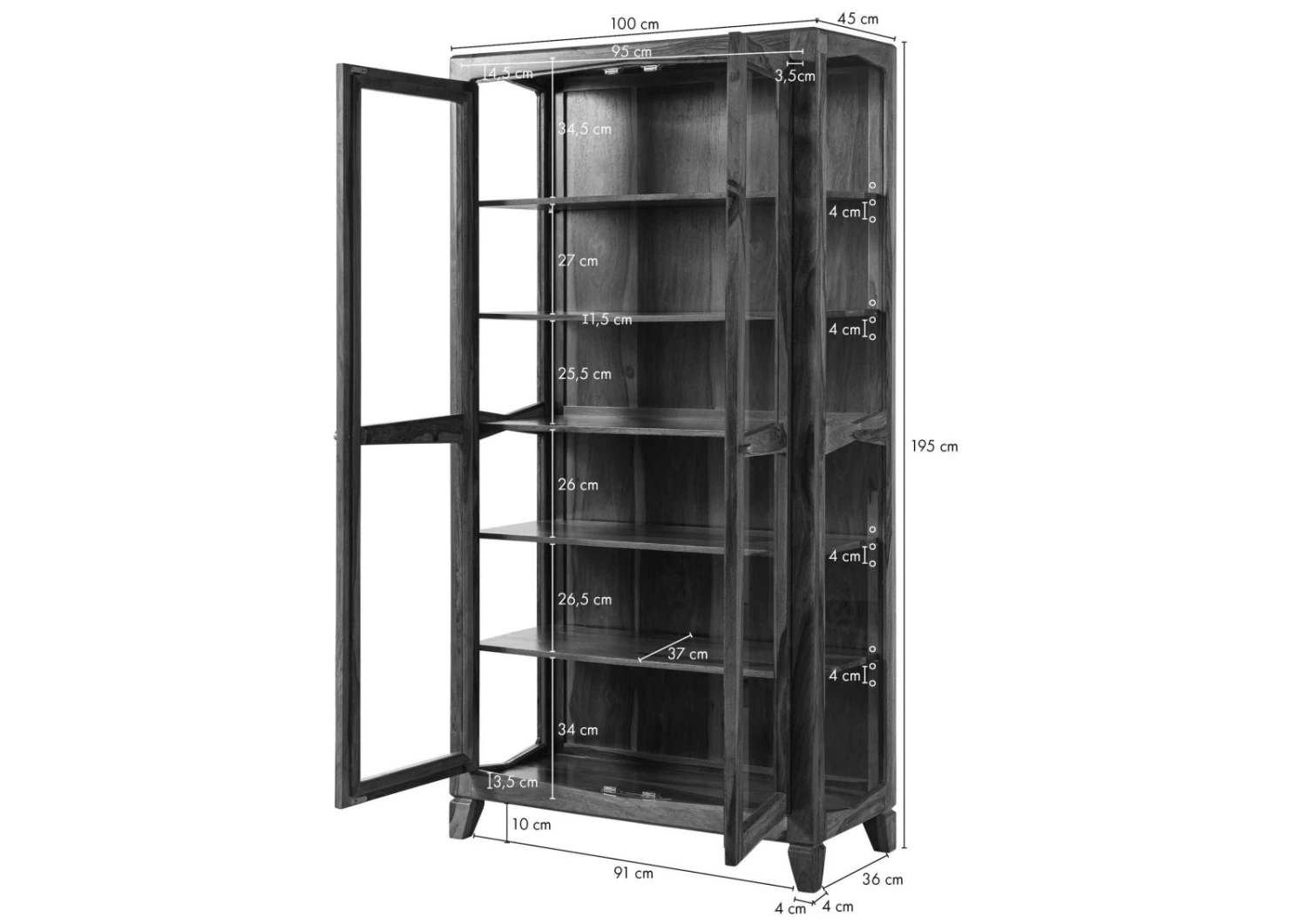 del prodotto ANCONA #116 Vetrina in legno di sheesham – laccato / marrone 100x45x195