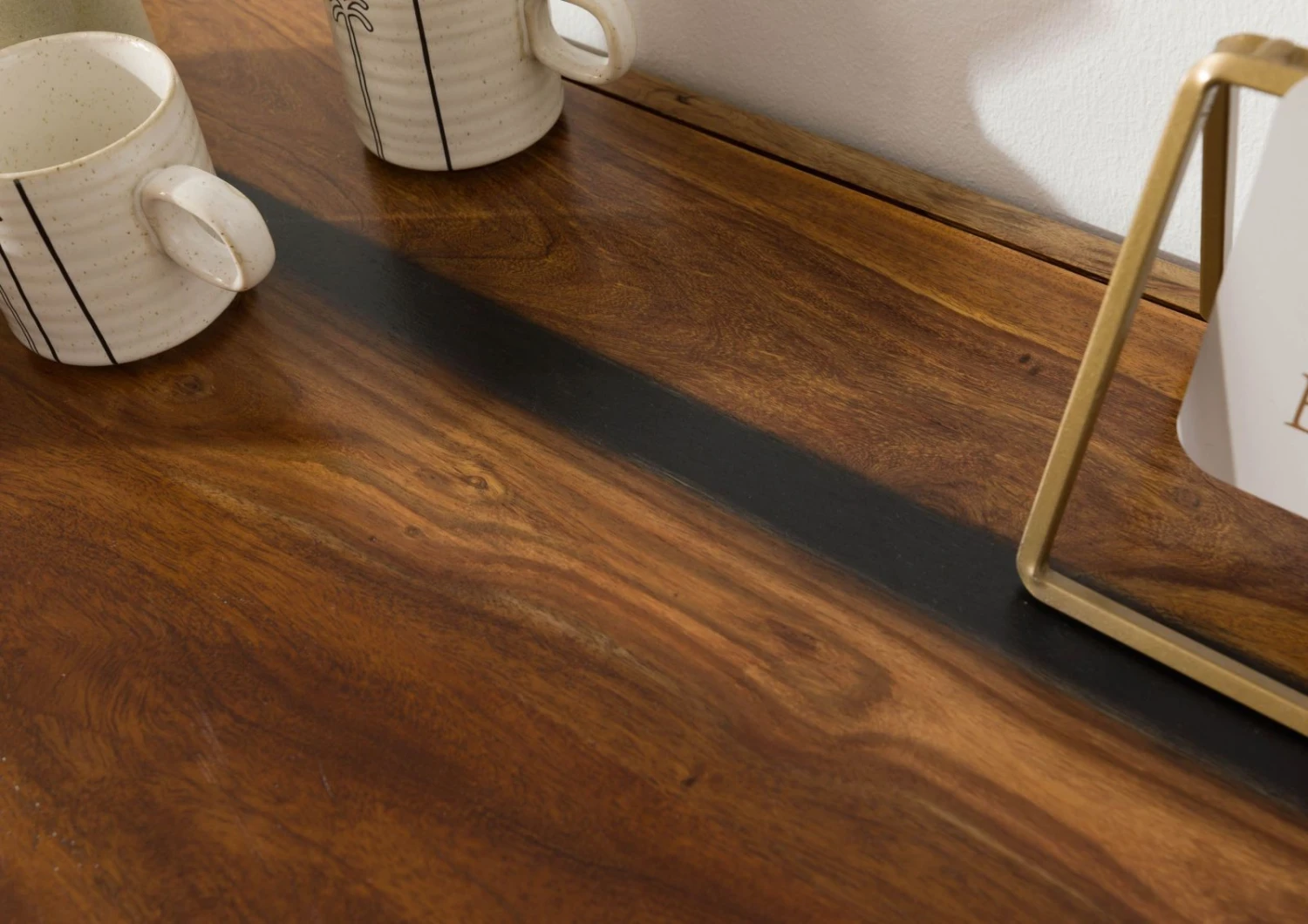 Tanto spazio in uno spazio ridotto: questa consolle in palissandro indiano massiccio, noto anche come sheesham, è il mobile perfetto per i piccoli spazi abitativi. Questo mobile di appena 100x45x80 cm ha addirittura quattro cassetti. Sono, inoltre, presenti due vani elegantemente nascosti dietro un’anta con chiusura magnetica. Oltre alla sua funzionalità, questo solido mobile colpisce anche per il suo aspetto.