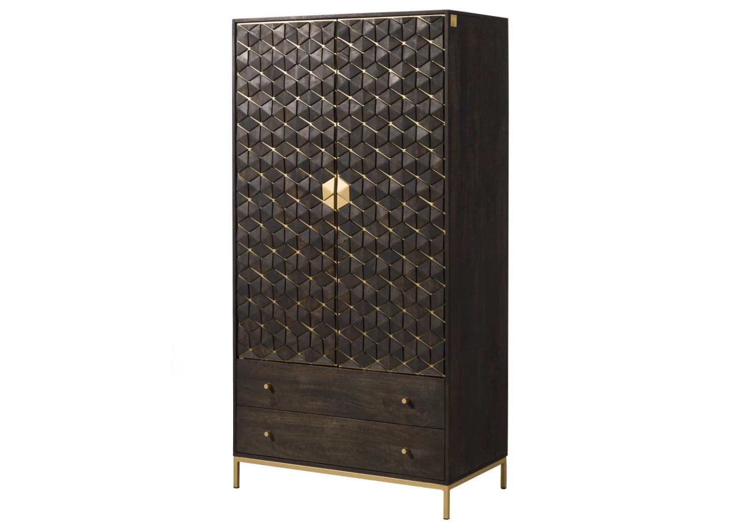Questo armadio sembra uscito dal set de “Il Grande Gatsby”: con i dettagli dorati, gli ornamenti sul davanti e le fini maniglie in legno, l’armadio riprende elementi di design tipici dell’art déco. Il punto forte sono le ante che possono essere aperte con la funzione Push To Open. Non ci sono maniglie esterne, in modo che lo sguardo dell’osservatore possa ammirare indisturbato il fronte decorativo.
