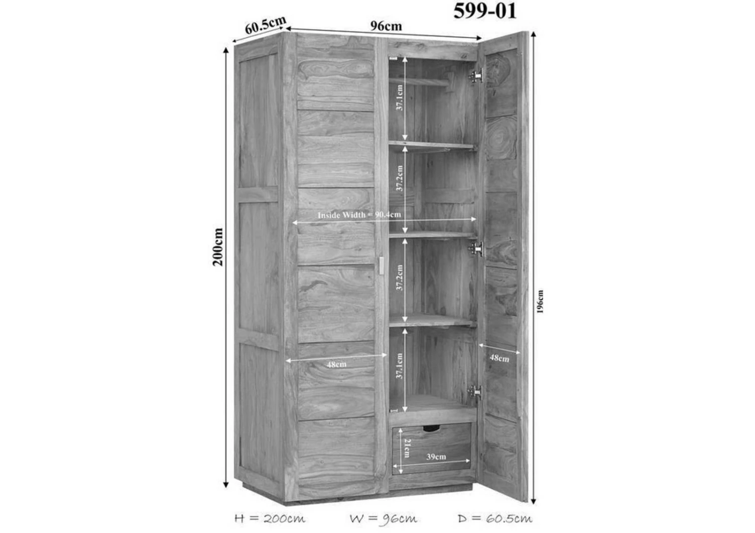 del prodotto armadio in legno di Sheesham / palissandro 96x61x200 marrone oliato NATURE BROWN #501
