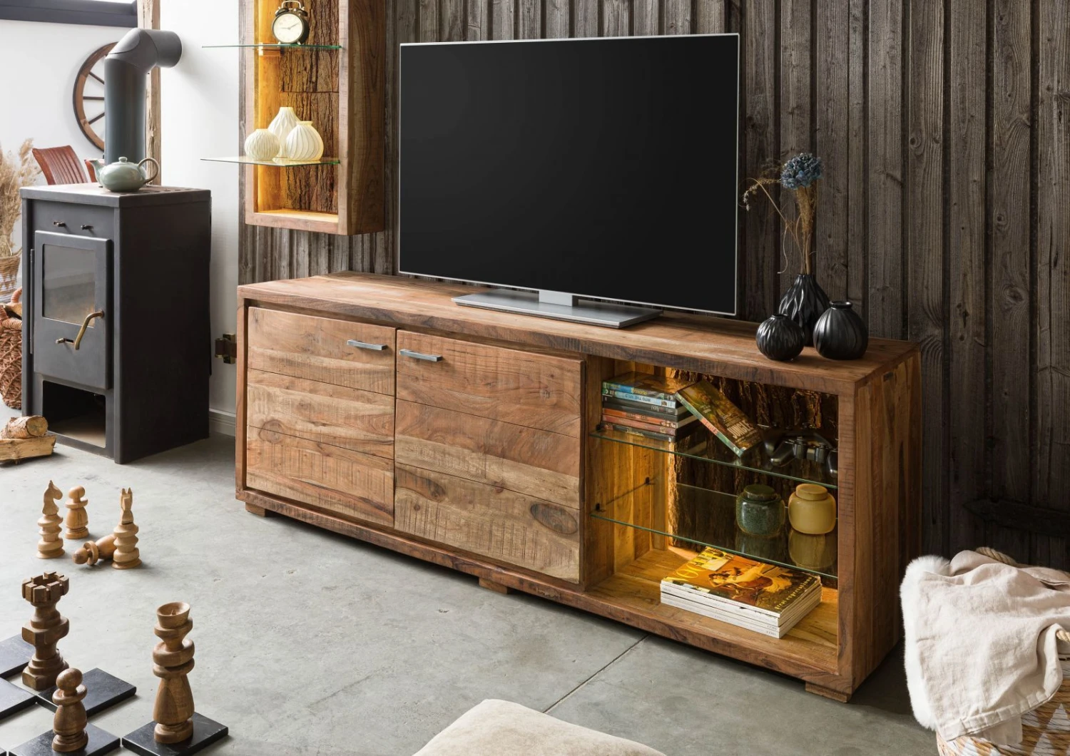 - Mobile TV in legno massello di acacia