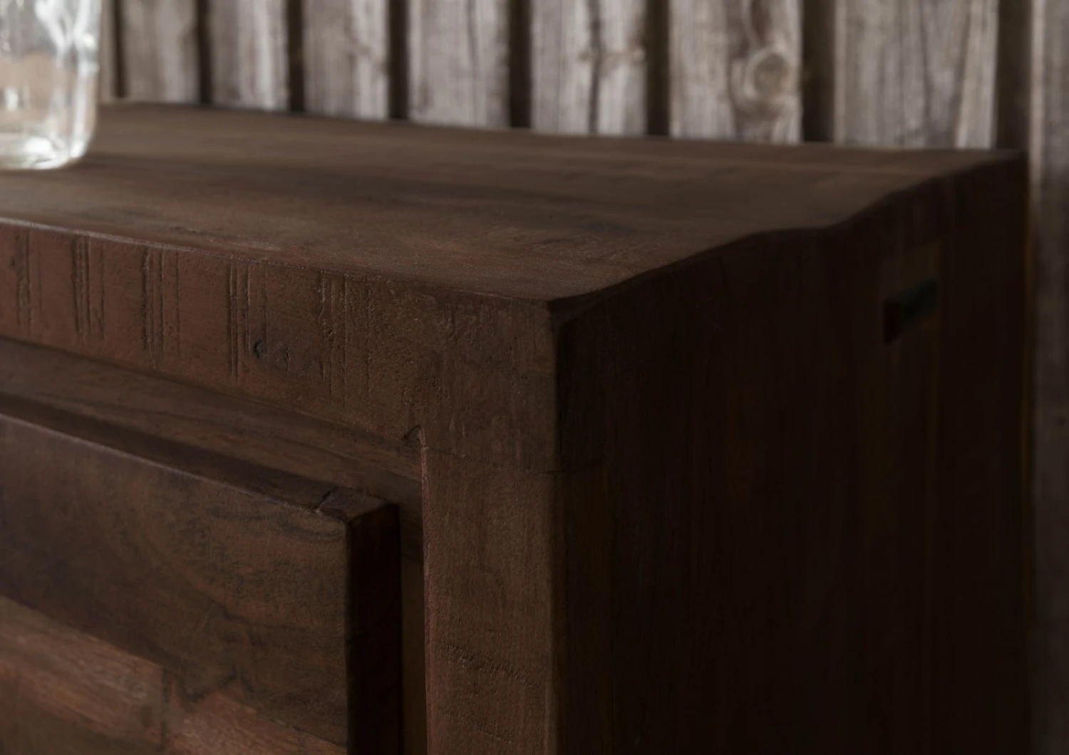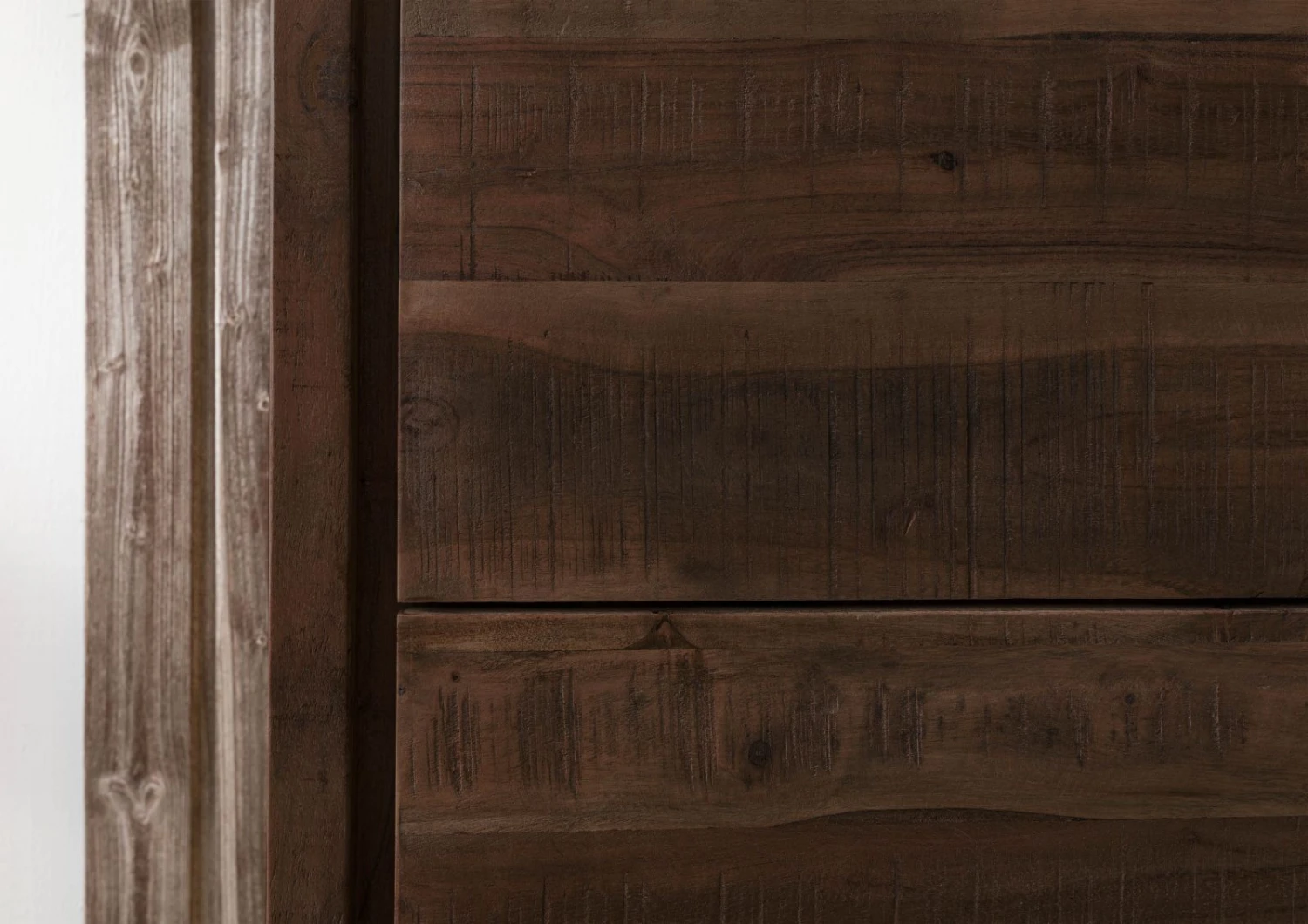 - Vetrina in legno massello di acacia marrone scuro con colpi di pialla a vista un moderno look usato