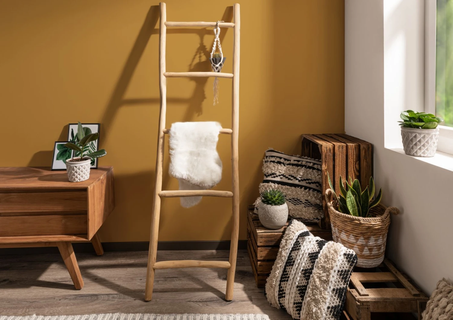 del prodotto BASSANO #135 Scala decorativa in legno grezzo di teak riciclato – naturale 50x5x180