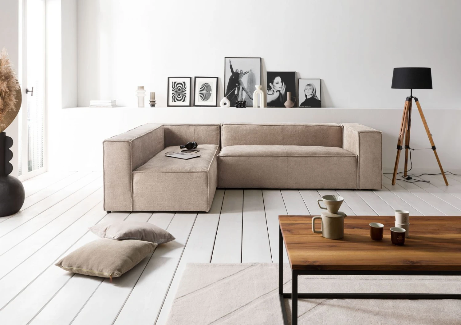 Divano angolare moderno: tessuto beige per un’eleganza speciale