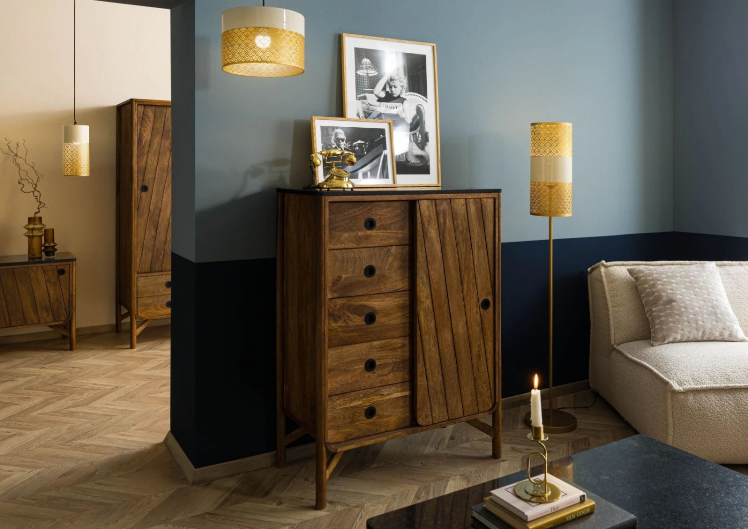- elegante Kommode aus massivem Mangoholz mit schwarzer Granitplatte