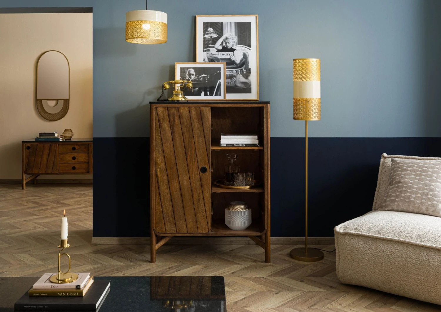 Die Stadt der Engel steht für Glanz, Glamour und den Charme des alten Hollywoods – diese braune Mangoholz-Kommode der Serie LOS ANGELES vereint all diese Attribute in einem Möbelstück. Der absolute Hingucker ist dabei die weiße Topplatte aus Marmor: Die Farbstruktur des Natursteins harmoniert mit der Maserung des Mango-Massivholzes auf elegante Art und Weise. Metallene Details wie die goldenen Griffmulden runden das Design mit einer Extraportion Chic ab.