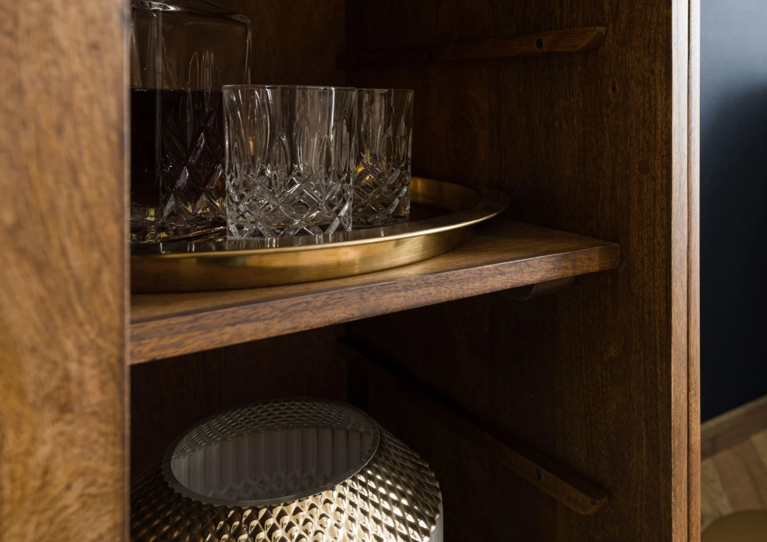 - glamouröse Design-Details: schräge Fräslinien auf der großen Schiebetür