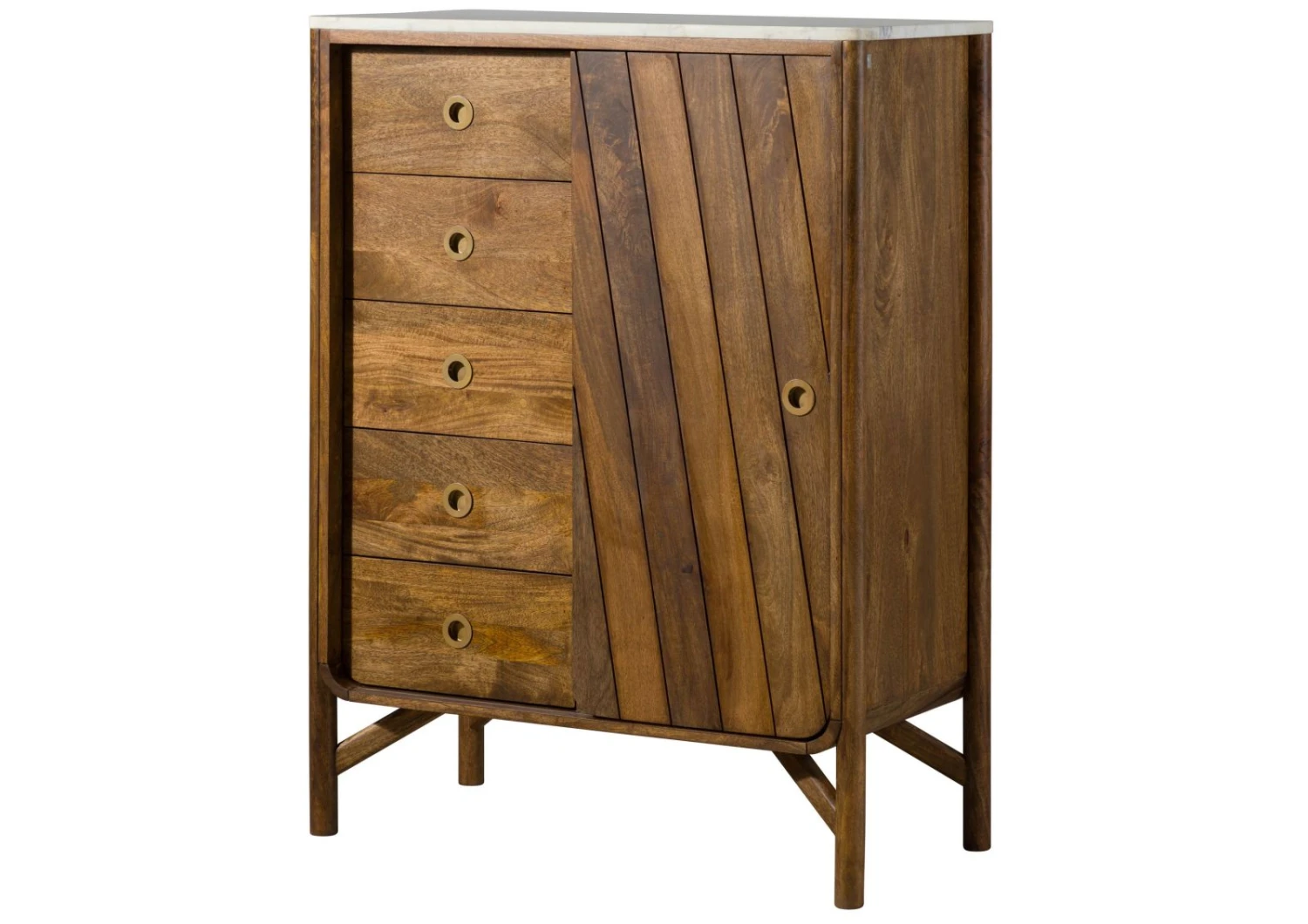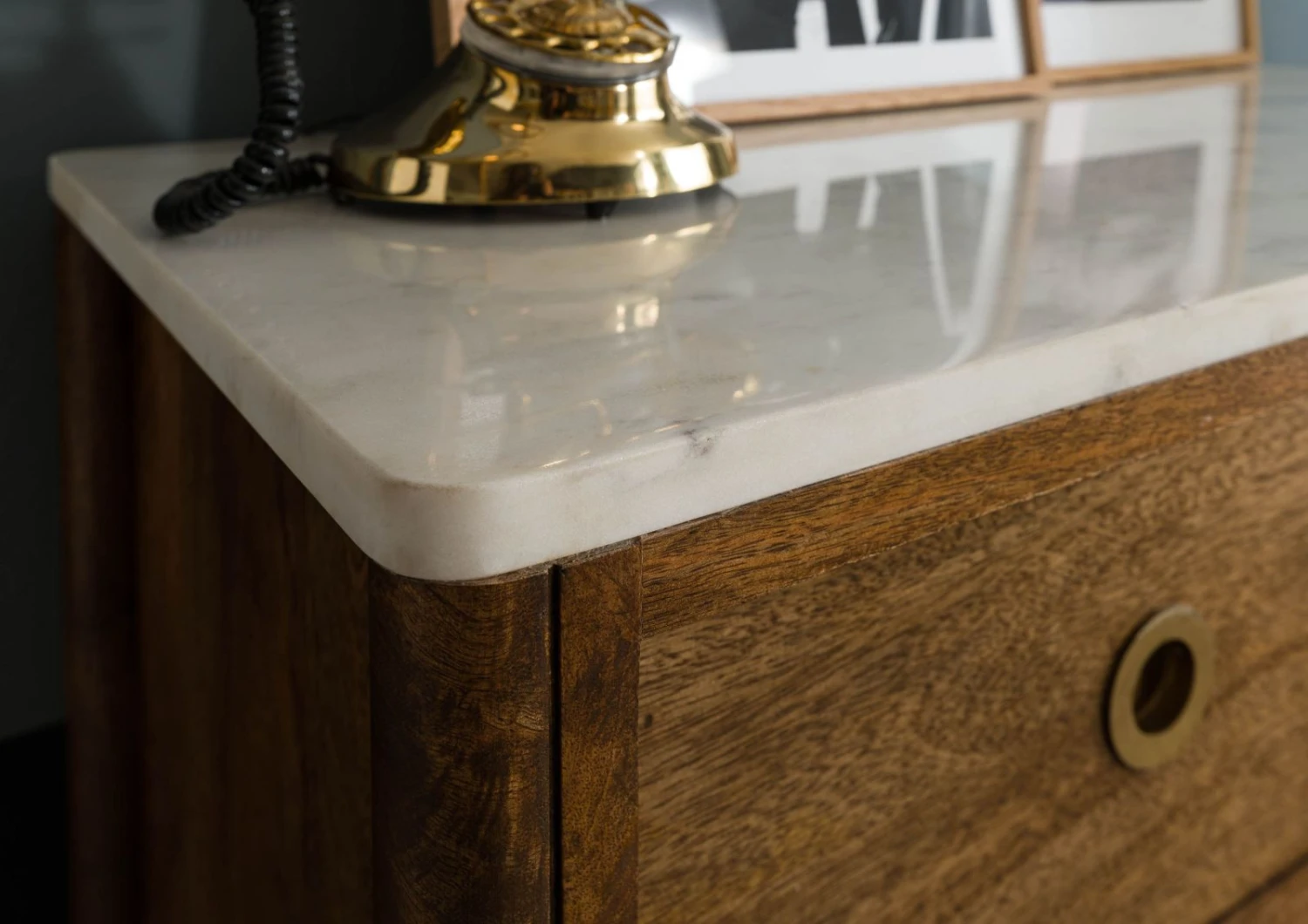 - elegante Kommode mit weißer Marmorplatte aus massivem Mangoholz