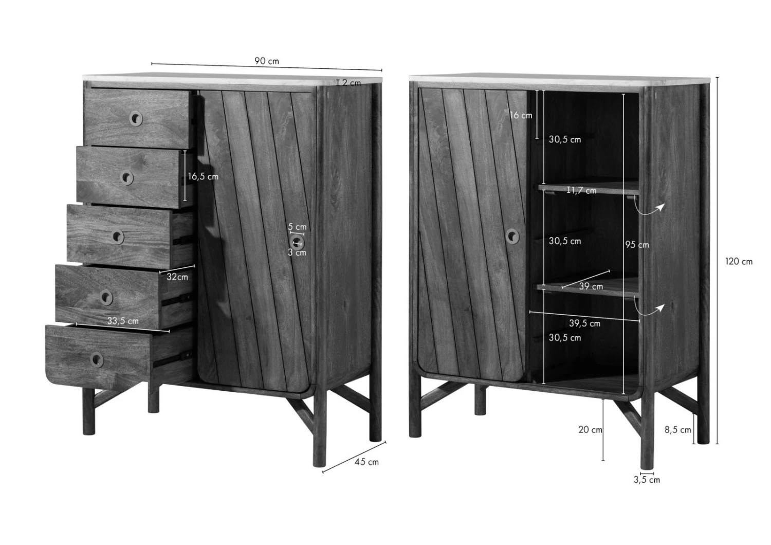 - zahlreiche Stauraummöglichkeiten: 5 Schubladen sowie 3 Ablagen hinter 1 Schiebetür