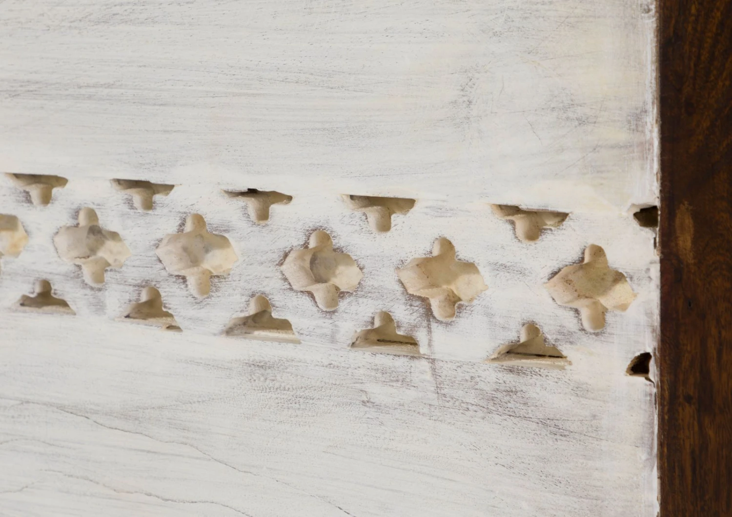 La bellezza di questo mobile dipende dalla scelta della materia prima, ma anche dalla sobria lavorazione. Il materiale usato, il legno di acacia, è da sempre un legno pregiato altamente apprezzato nella produzione di articoli di arredamento. L’eleganza e la robustezza di questi mobili è data non solo dal materiale utilizzato, ma anche dalla sua successiva lavorazione. L’acacia è uno dei legni massicci più resistenti e allo stesso tempo più belli che si possano trovare. Grazie al trattamento patinato, si ottiene un interessante effetto di ruvidità della superficie ed i pori del legno si aprono dando l’impressione della profondità. I pori del legno evidenziati dal trattamento della sabbiatura vengono patinati con la cera bianca. La tonalità naturale dell’acacia, in questo modo, viene valorizzata ed esaltata. In questo modo, i mobili di questa linea appaiono come se fossero stati interamente cerato ma, se osservati da vicino, si presentano del tutto naturali, lucenti e non trattati.