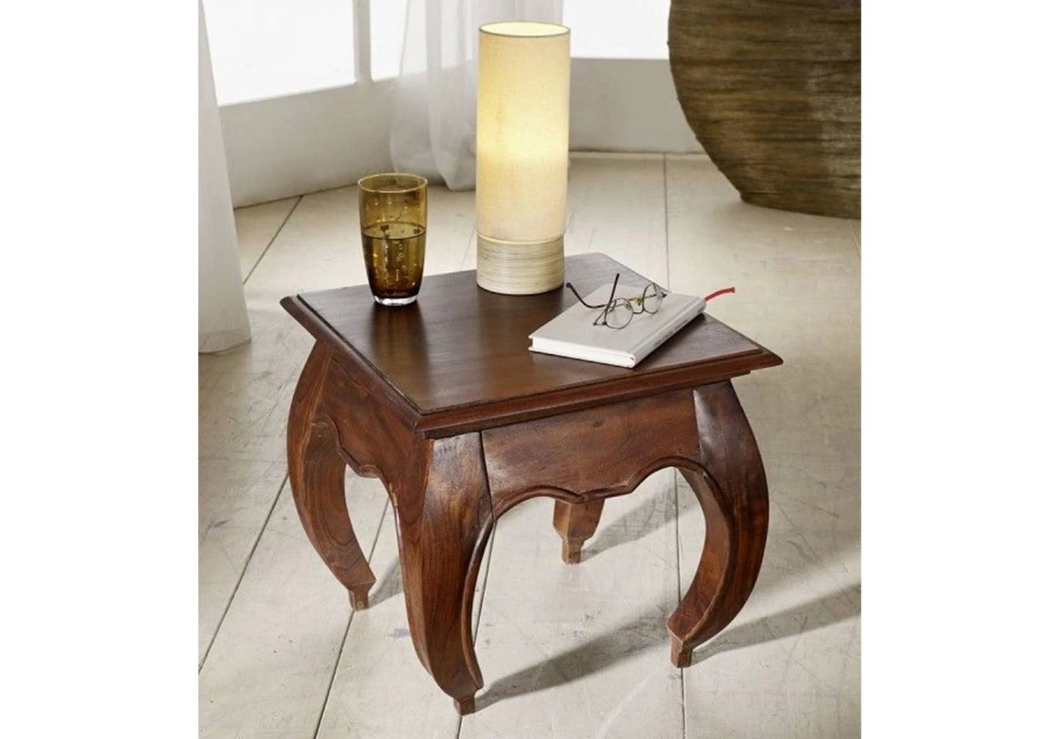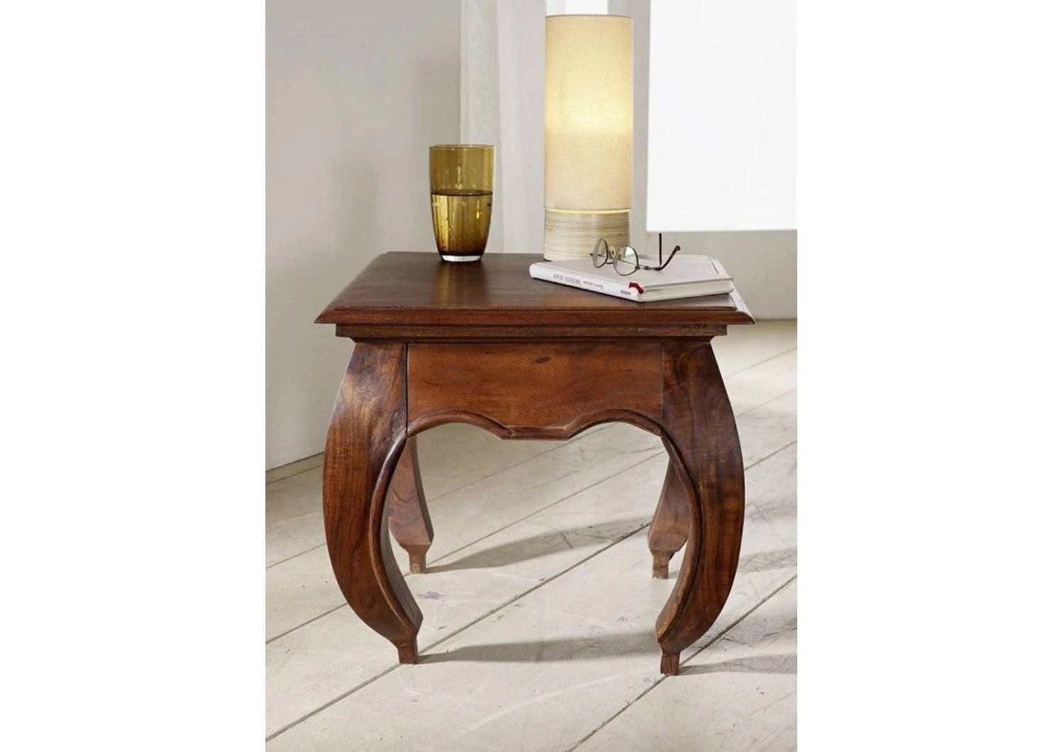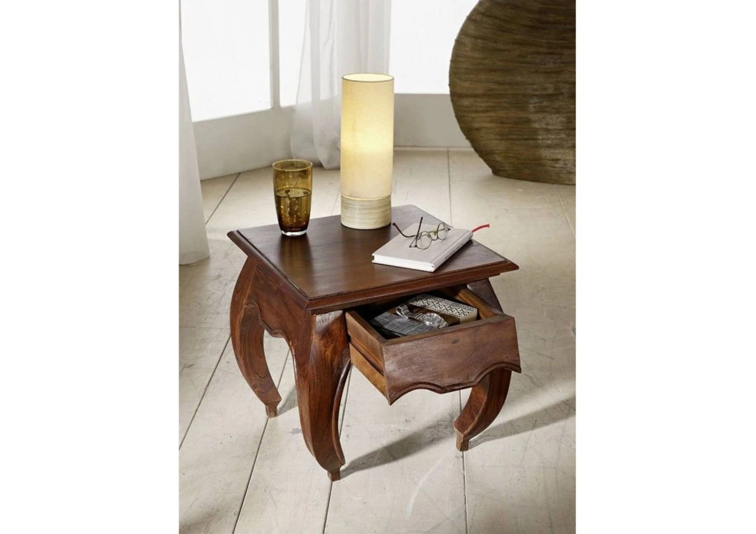 Questo mobile massiccio è stato realizzato mantenendo lo spirito di quest’epoca; sia il colore che il design corrispondono a questo tempo passato. Già al primo sguardo, le gambe del tavolo catturano l’attenzione con la loro forma ondulata. Questa caratteristica è tipicamente accattivante e riflette un aspetto armonioso del meraviglioso stile coloniale. Il cassetto del comodino è stato dotato anche di un pannello frontale ricurvo che fornisce un’altra caratteristica distintiva. Oltre al ripiano di appoggio, questo pezzo fornisce anche un piccolo spazio per tenere i vostri oggetti al sicuro. Anche la tavola in superficie rappresenta una reliquia di quest’epoca: la modanatura laterale, fresata artisticamente, avvolge gli oggetti riposti con un effetto vincente. I toni sul nocciola conferiscono al mobile un calore e una gradevolezza che lo avvolgono interamente, in un modo unico. Questo tavolino si abbina molto bene con il letto OPIUM, anch’esso interamente fabbricato in stile coloniale. In combinazione con il comodo letto, è possibile creare una stanza da letto completa e creare un ambiente senza tempo. Si prega di notare che, a causa del materiale naturale, ci possono essere differenze delle venature rispetto all’immagine originale. Ogni pezzo fatto di materiali naturali differisce nelle migliori sfumature, il che rende ogni singolo pezzo unico. Questo bellissimo comodino rende lo stile coloniale molto accattivante.