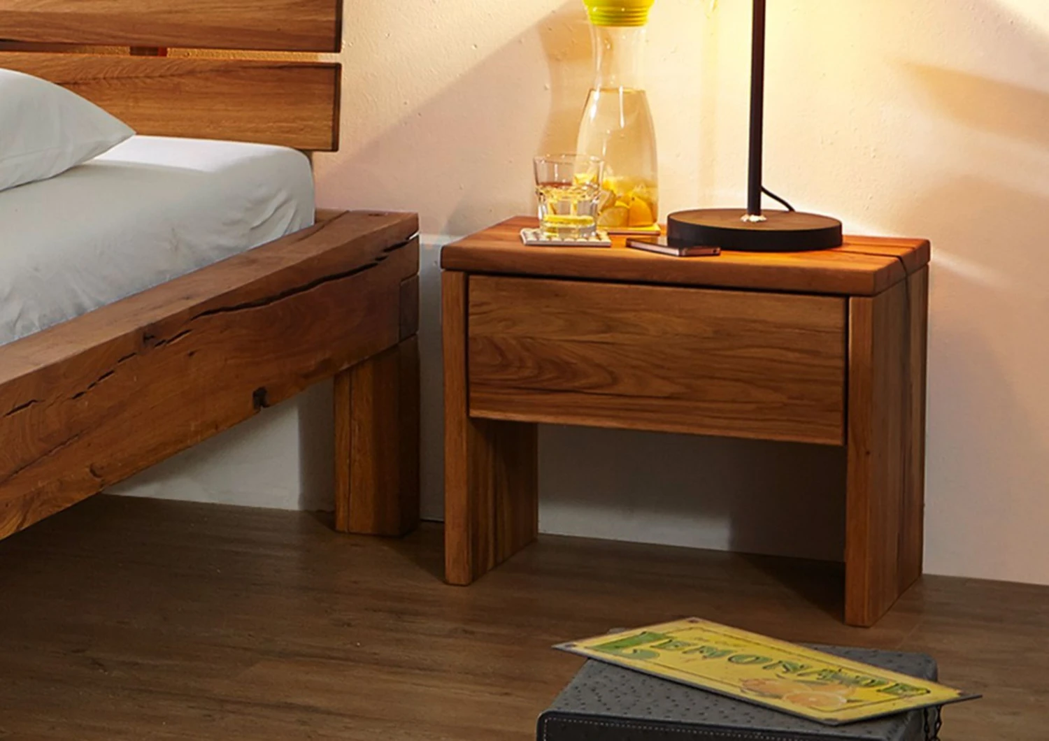 Comodino in legno massello di faggio color marrone intenso con sfumature miele e autentiche discromie esaltate dal trattamento ad oliatura. La bellezza di questo arredo sta nella purezza delle sue forme, nella totale assenza di complessità, con accento su quella che si potrebbe definire eleganza funzionale. Laspetto caldo e solido del materiale unito al design minimale danno un risultato estetico rustico e molto versatile. Il singolo cassetto di questo comodino in legno massello è privo di maniglie ma si apre con sistema invisibile ad incavo nella parte inferiore. Restano da sfruttare il ripiano superiore e il vano libero in basso, adatto ad accogliere effetti personali come scarpe e pantofole. Il mobile si abbina molto facilmente con componenti che condividono lo stesso stile, ma trova espressione massima negli arredi della stessa collezione.
