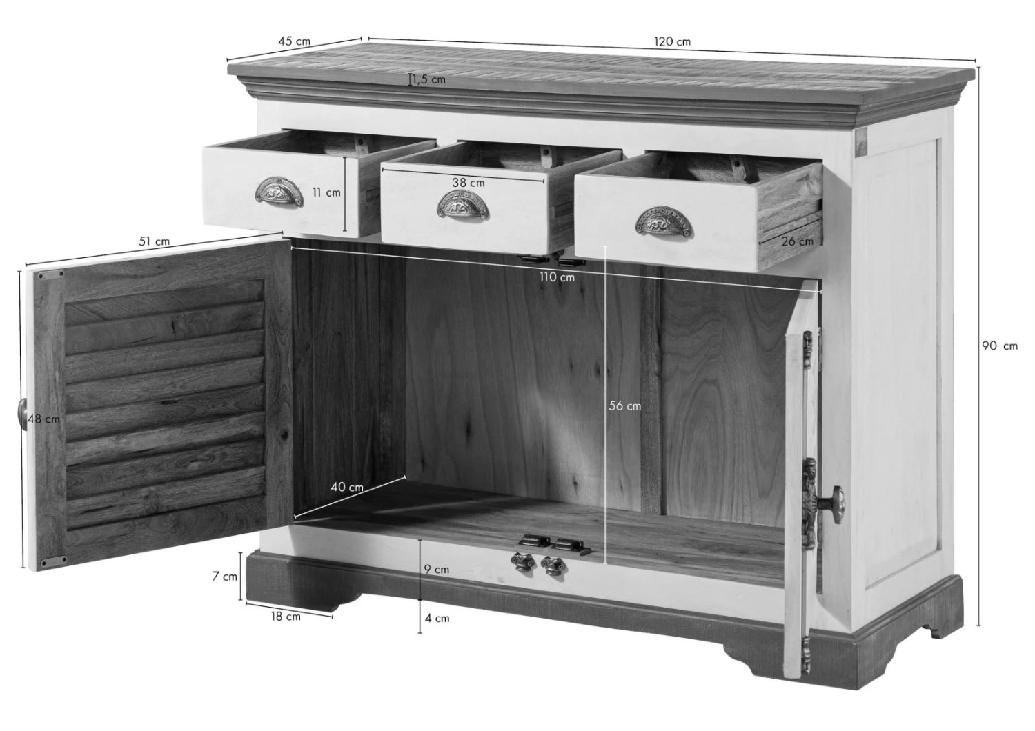 120x45x90 cm (LxPxA)