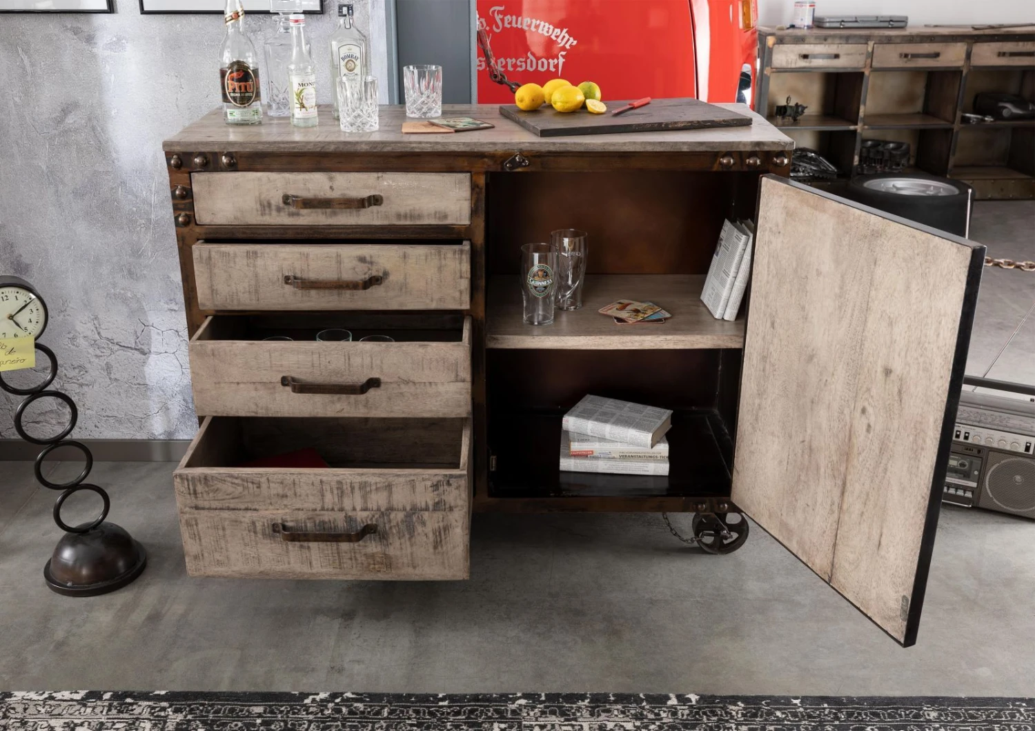 La materie prime, effetto consumato e colori freddi, lo stile industriale ha già conquistato molti appassionati di design nel corso dei decenni. L’associazione tra legno di mango massiccio e ferro grezzo rende i mobili della nostra serie HEAVY INDUSTRY pezzi robusti ed essenziali per tutti gli amanti dei mobili non convenzionali. Sorprendi te stesso nella tua creatività arredando e rinnovando il tuo interno con questi pezzi atipici. Non aver più paura di abbinare i colori e materiali diversi, la nostra collezione ispirata ai produttori del secolo scorso ti offre la massima libertà di scelta.