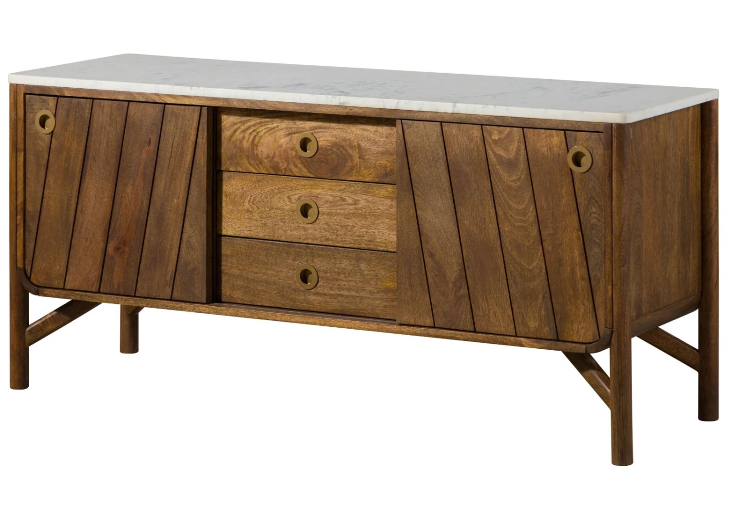 - braunes Mango-Sideboard mit eleganter Marmorplatte: Luxus für Zuhause
