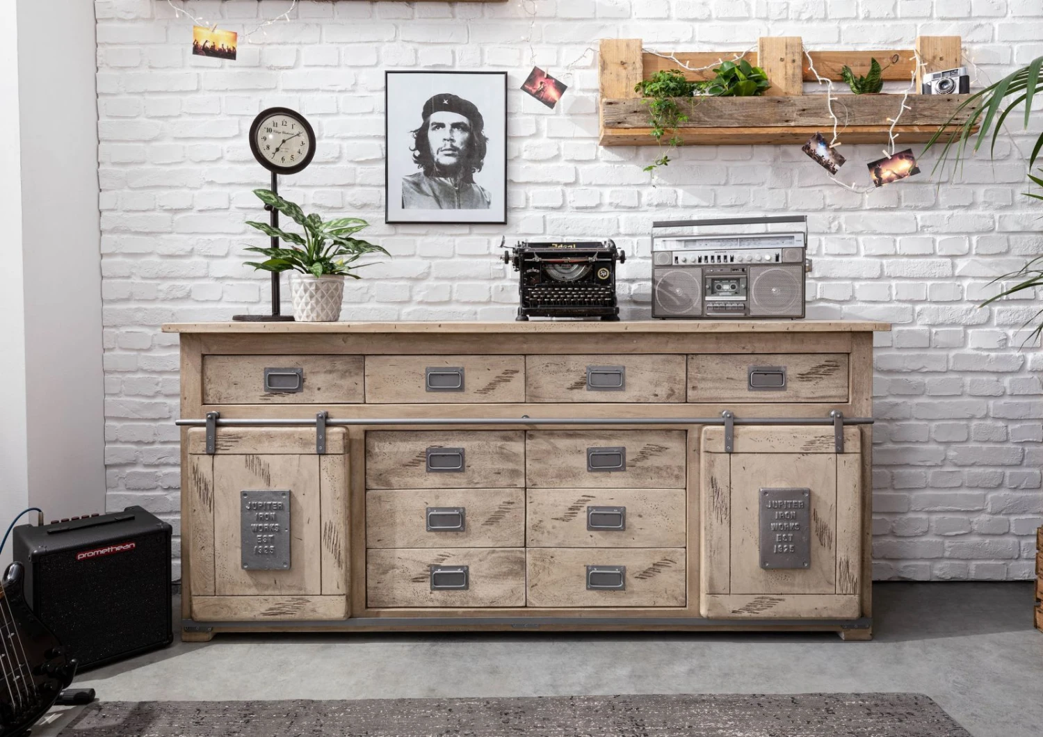 del prodotto credenza in legno di Mango 200x45x90 sbiancato laccato RAILWAY #322