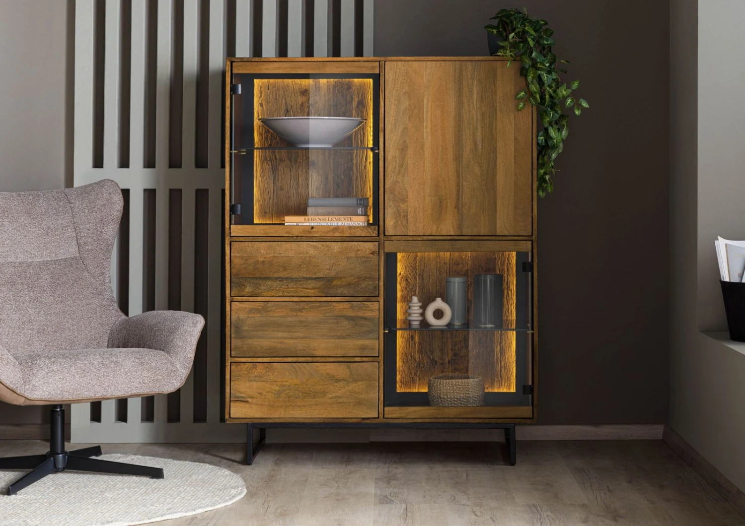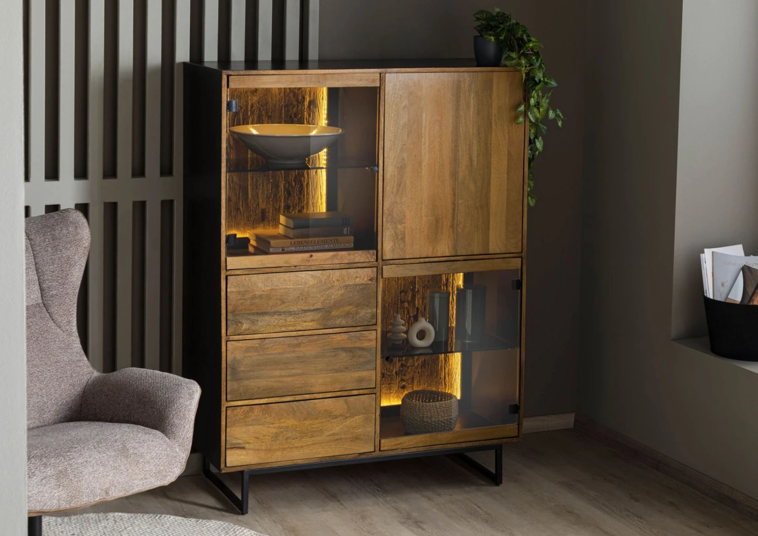 del prodotto Credenza in legno di Mango / Legno riciclato 111x47x145 Laccato / nero / naturale DAVIS #30