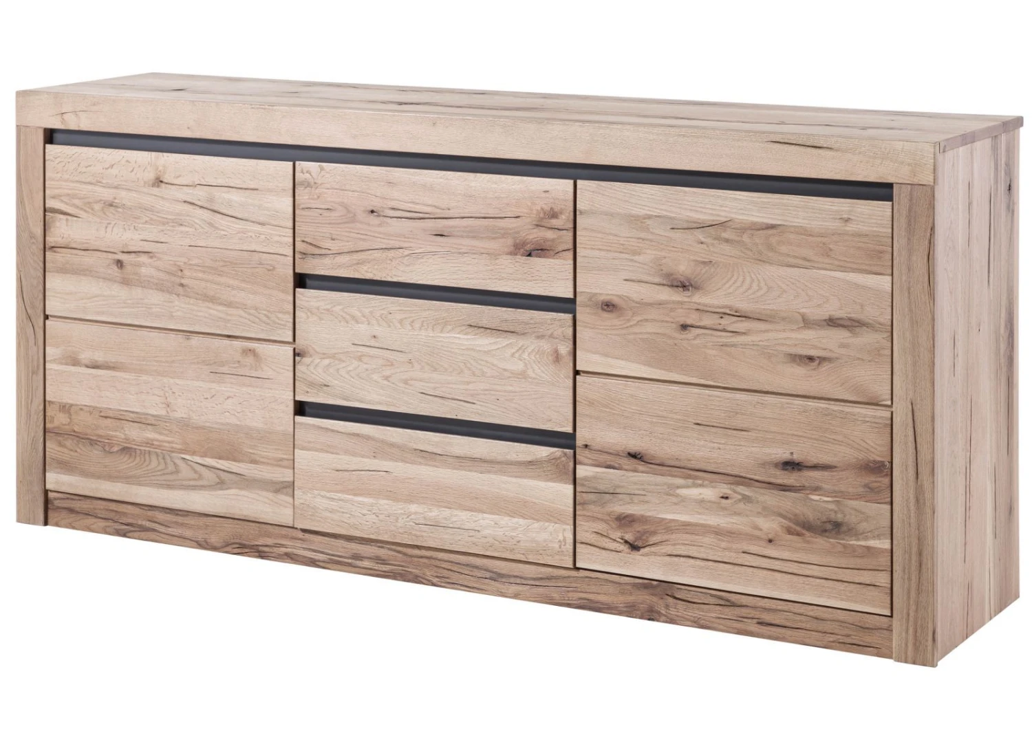 Questa elegante credenza della serie MONTREUX colpisce per il suo emozionante abbinamento di legni e per il loro aspetto naturale. La finitura a olio di colore chiaro mette in risalto le nodosità e l’esclusiva superficie con crepe del legno di quercia. Questa finitura garantisce, inoltre, che le proprietà naturali del legno rimangano invariate e che il materiale naturale possa continuare a respirare.