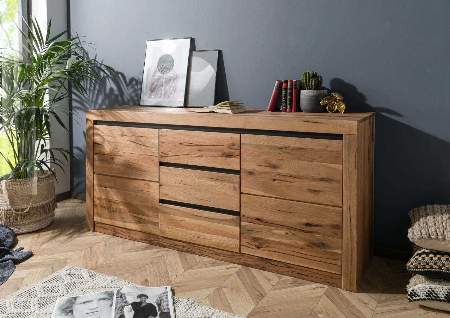 Questa elegante credenza della serie MONTREUX colpisce per il suo emozionante mix di legni. La quercia selvatica e il cerro garantiscono la solidità del mobile. Questo abbinamento crea anche un aspetto imponente. L’oliatura nel colore naturale mantiene le proprietà naturali del materiale, consentendogli di continuare a respirare.