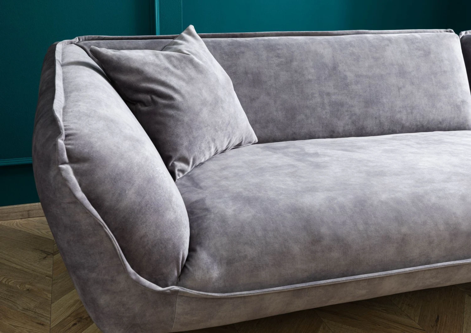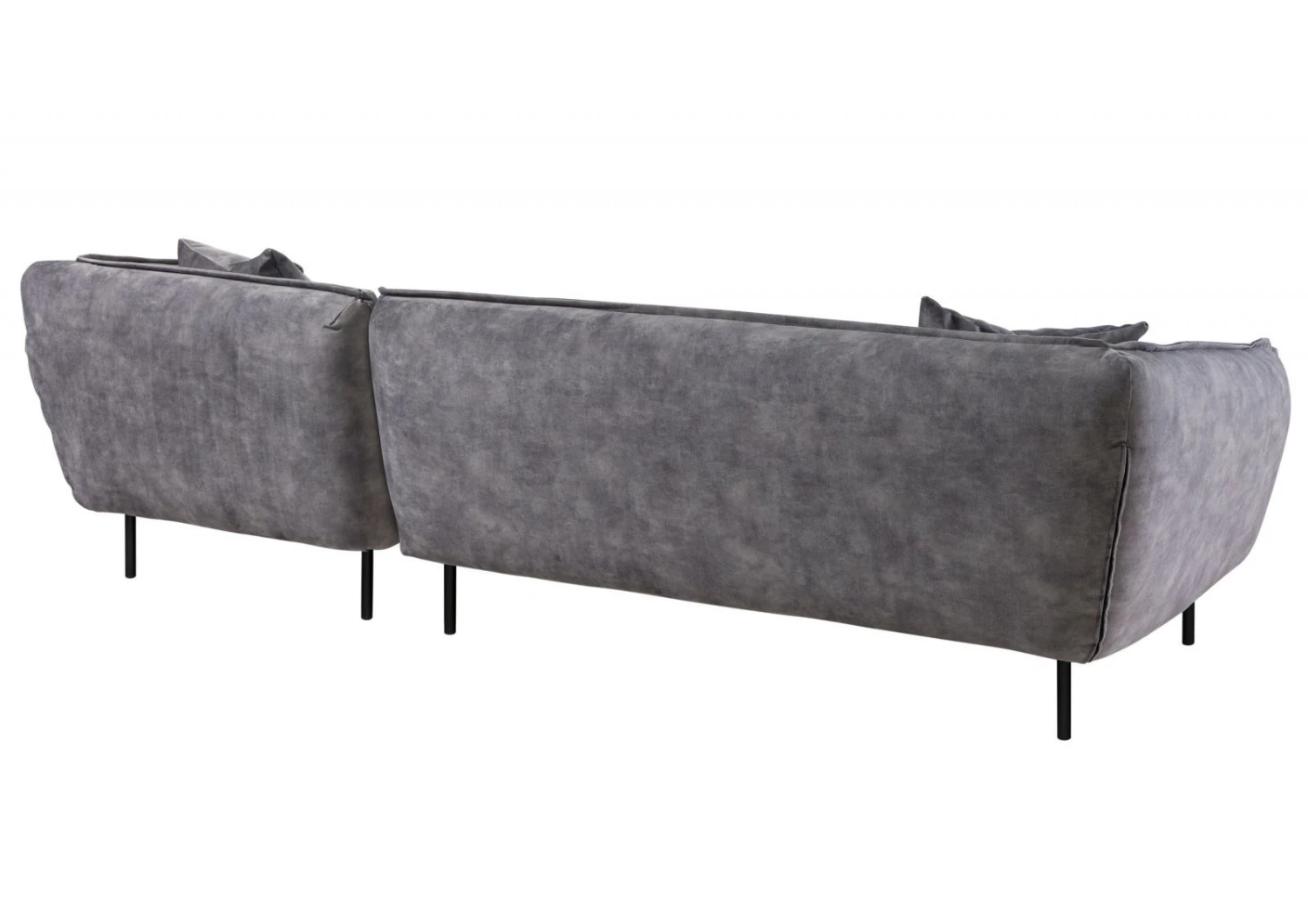Il divano di design è dotato di due cuscini decorativi coordinati, che riprendono la sfumatura di colore grigio screziato e offrono un comfort extra quando necessario. La schiuma resistente, che poggia su molle greche di alta qualità, garantisce una seduta confortevole. Questo divano angolare in grigio è un vero capolavoro!