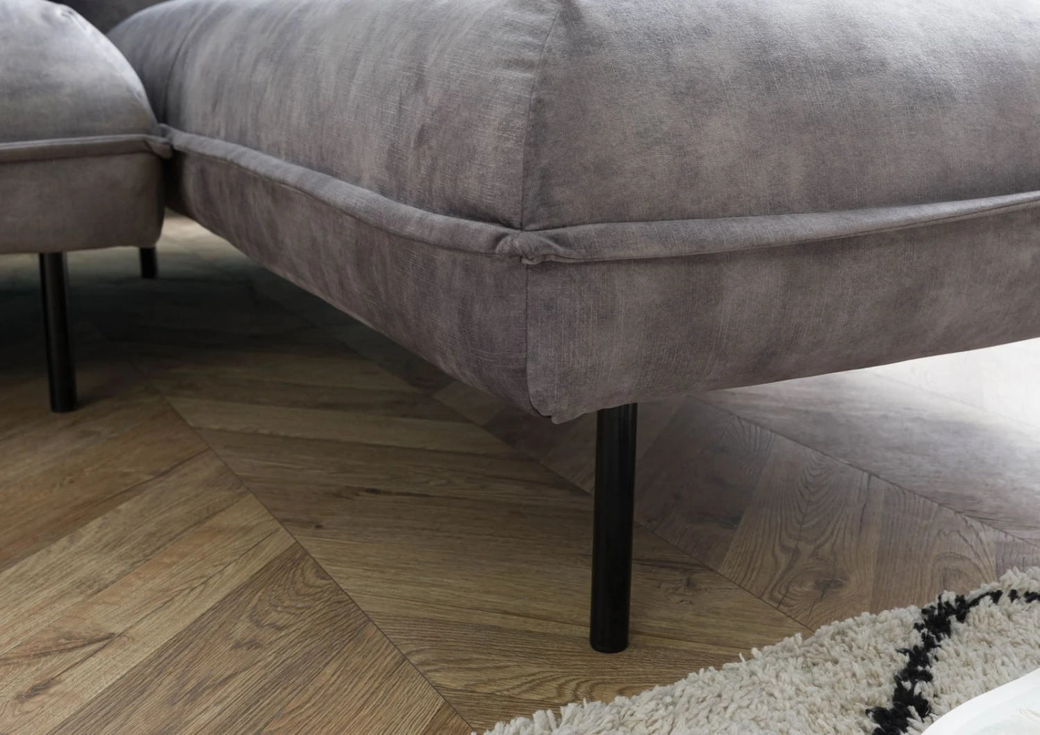 Questo divano angolare di design in grigio colpisce per il suo aspetto moderno. Gli schienali alti e sottili creano un look stravagante. I piedini metallici e sobri sottolineano l’aspetto contemporaneo del divano: sollevano la struttura della seduta di ben 18 cm dal pavimento, donando una sensazione di leggerezza.