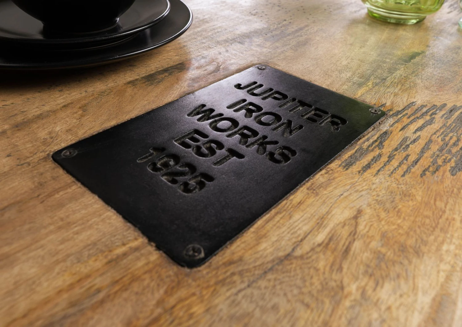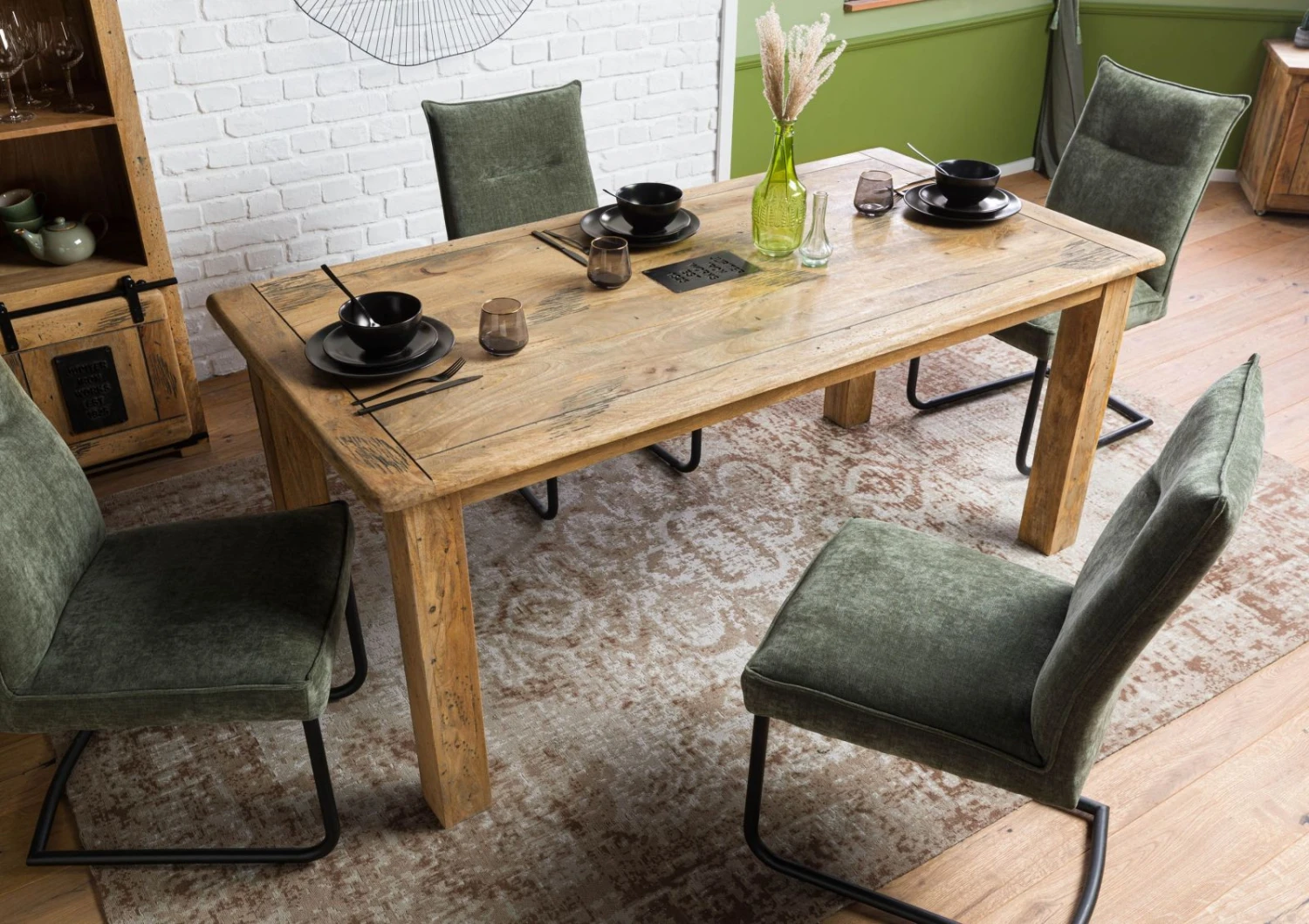 - Solido tavolo da pranzo di design con elementi in metallo ed elegante legno di mango