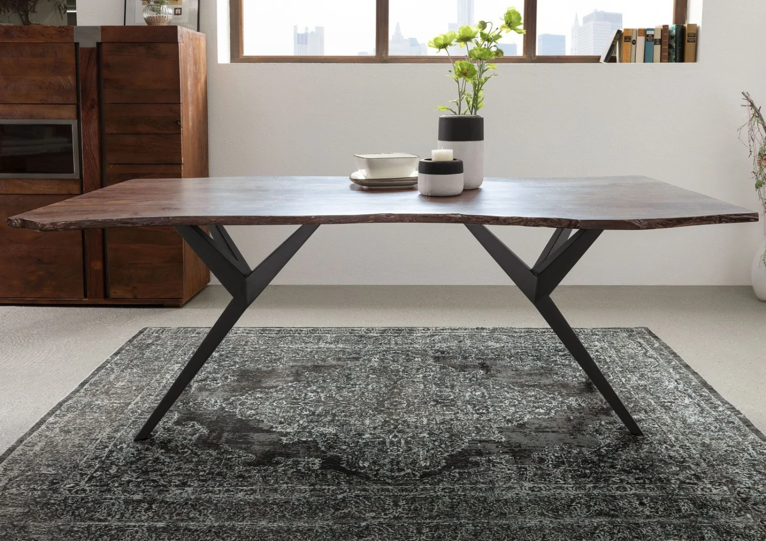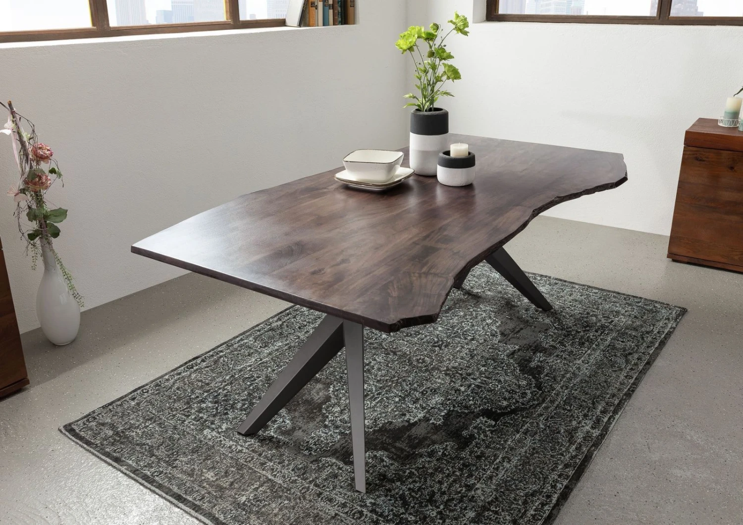del prodotto FREEFORM 4 Tavolo da pranzo in legno di acacia – laccato grigio / ferro – antracite mat 180x90x76