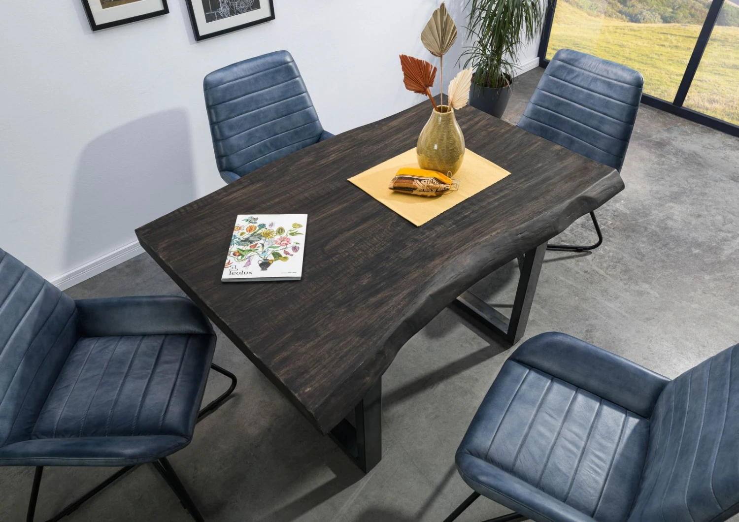 Questo tavolo della serie FREEFORM 5 è l’unione perfetta tra design moderno e la bellezza unica della natura: il piano del tavolo in legno massiccio con bordo naturale dell’albero è abbinato a una robusta base a slitta in ferro. Un mobile unico e robusto che attira l’attenzione di tutti!