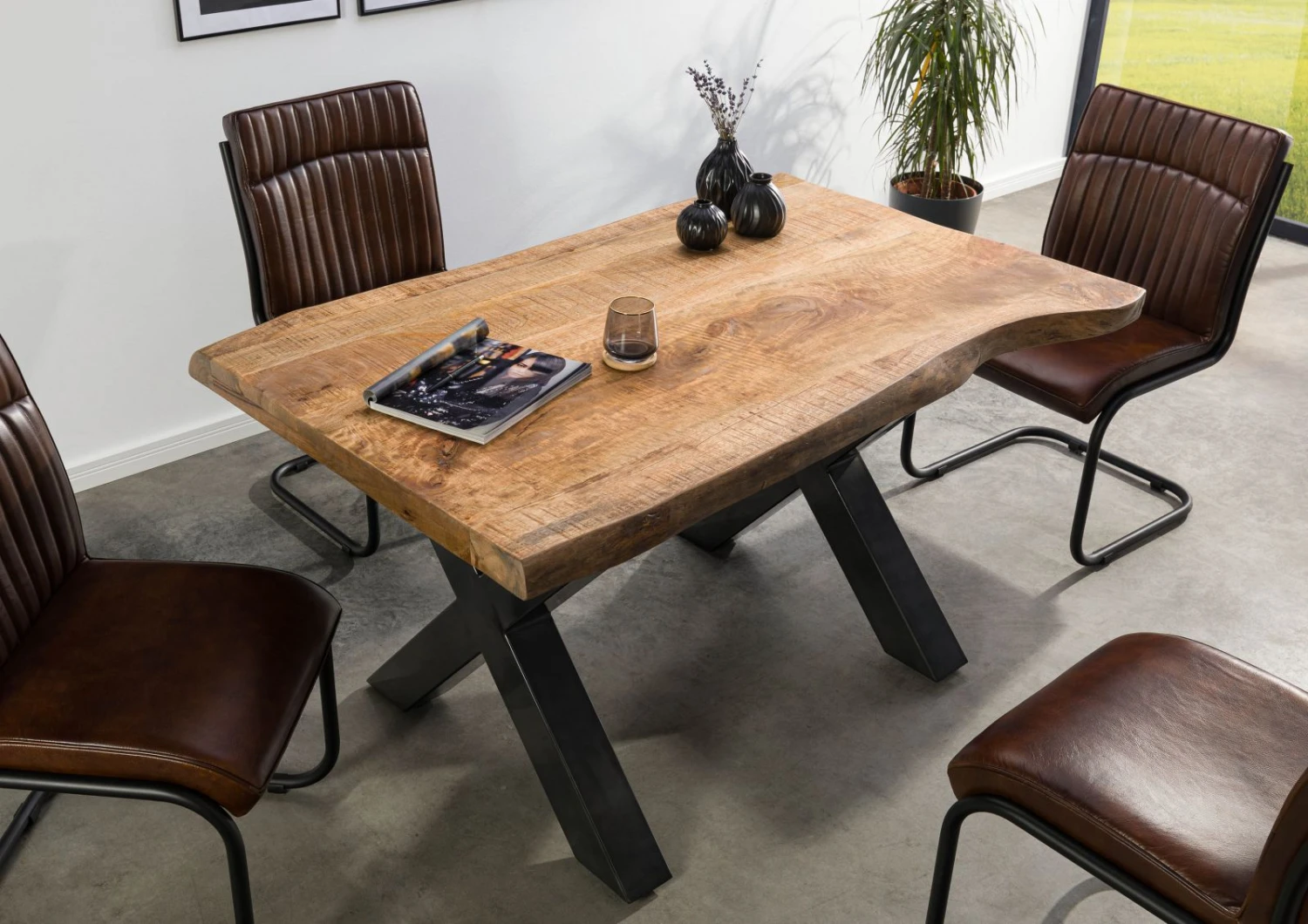 Tavolo in legno di mango da 160 cm in stile industriale con bordo naturale