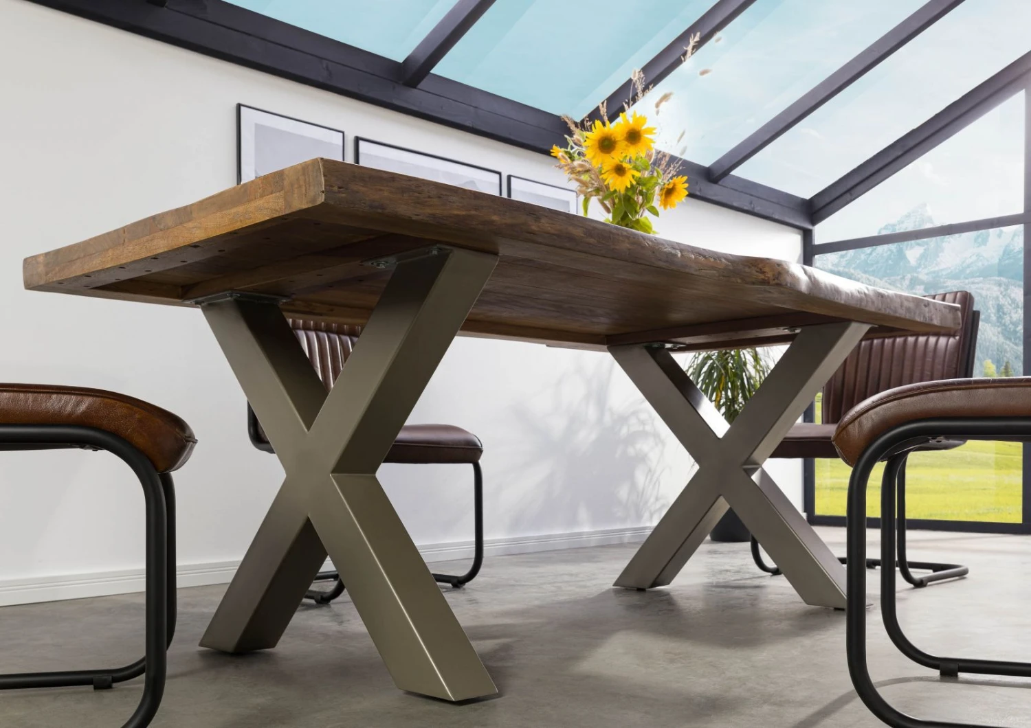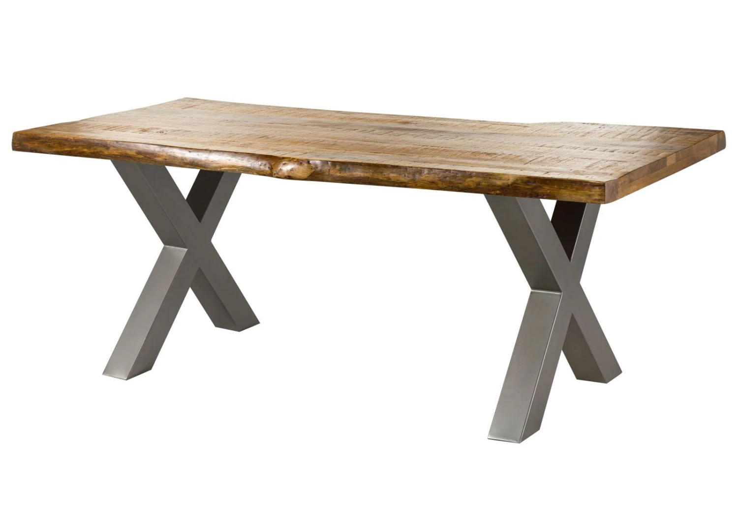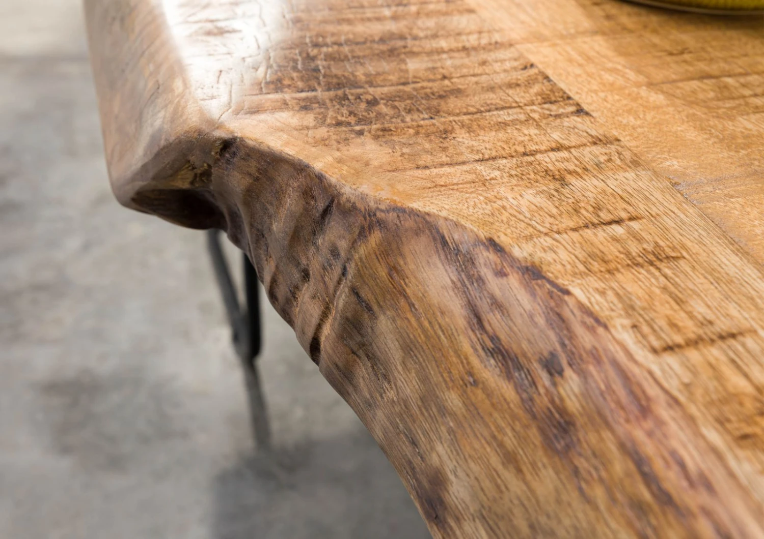 Tavolo in legno di mango da 180 cm in stile industriale con bordo naturale