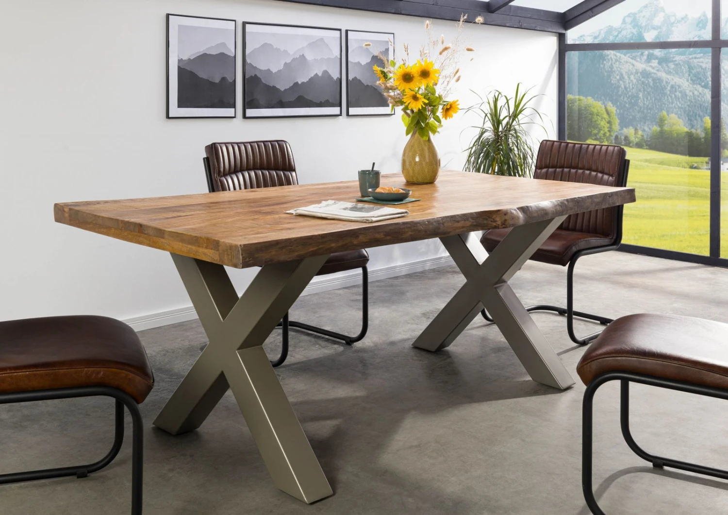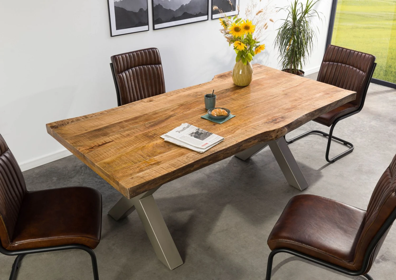 Tavolo in legno di mango da 200 cm in stile industriale con bordo naturale