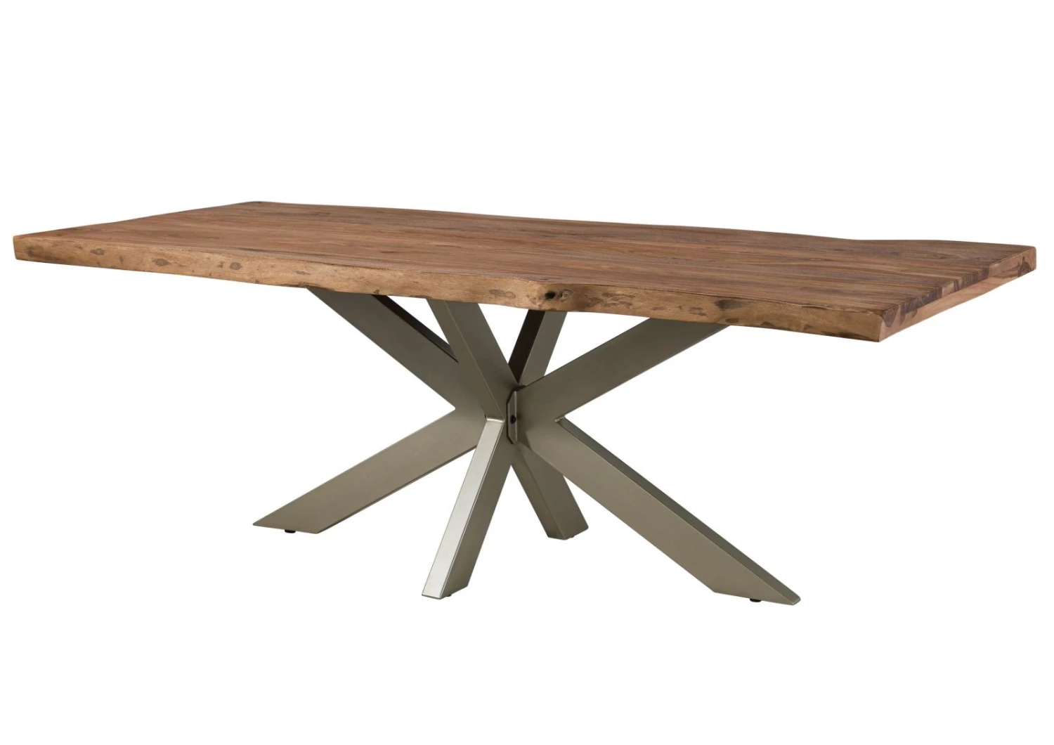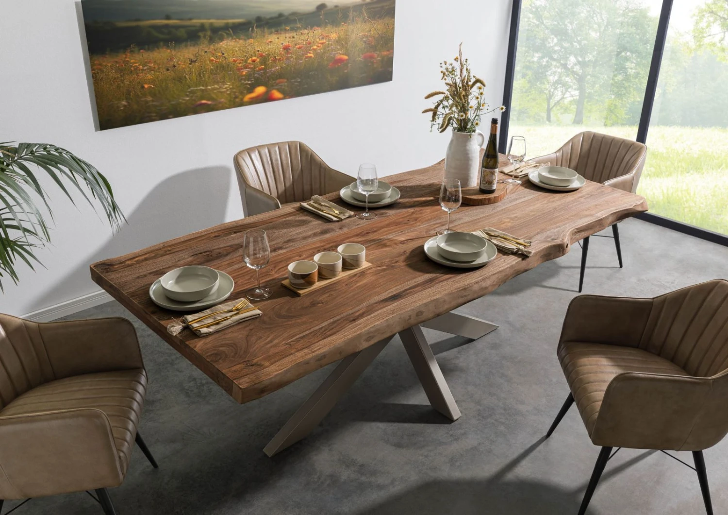 del prodotto FREEFORM 5 Tavolo da pranzo in legno di sheesham – decapato / grigio – gambe ad X argento matt 180×90