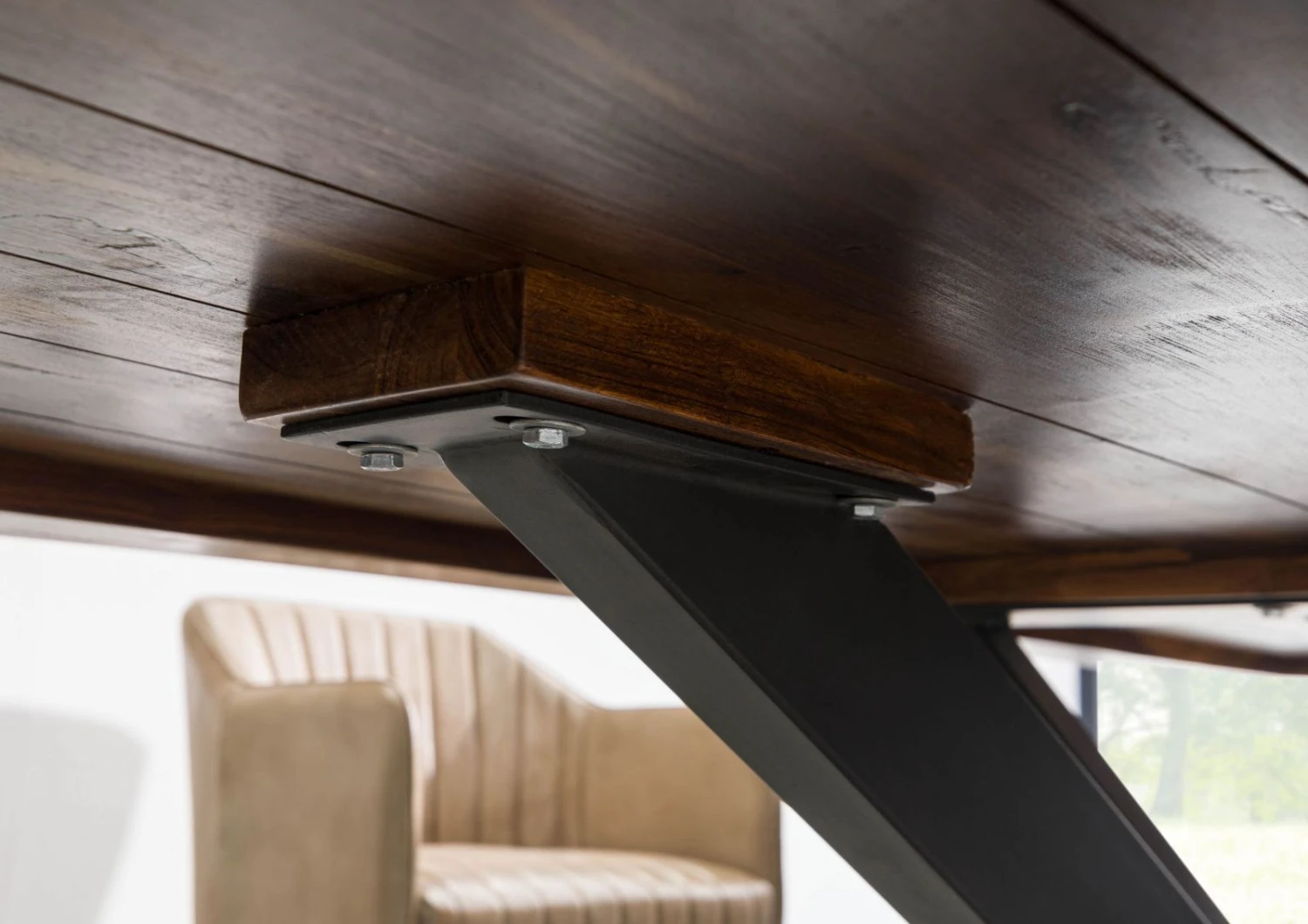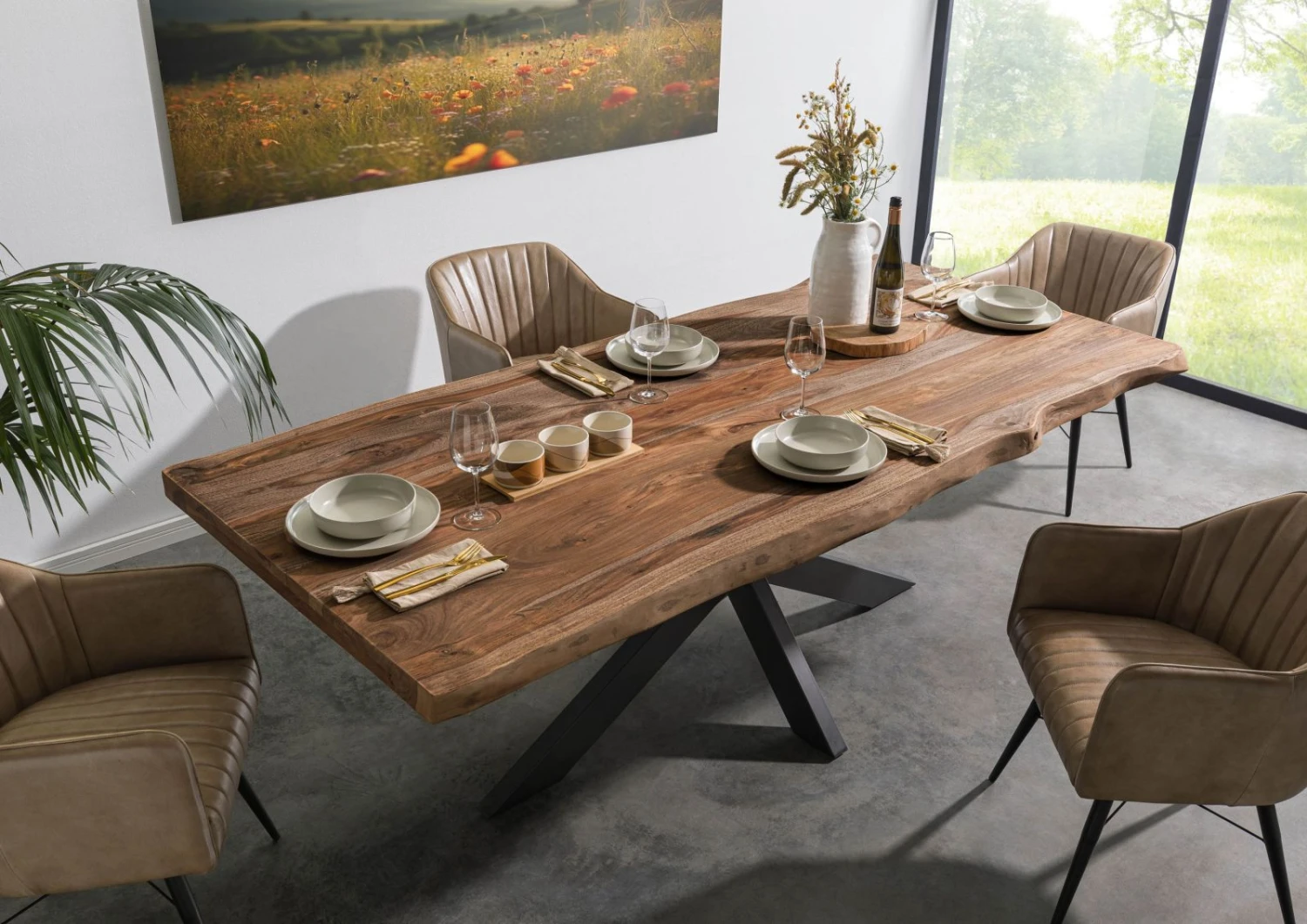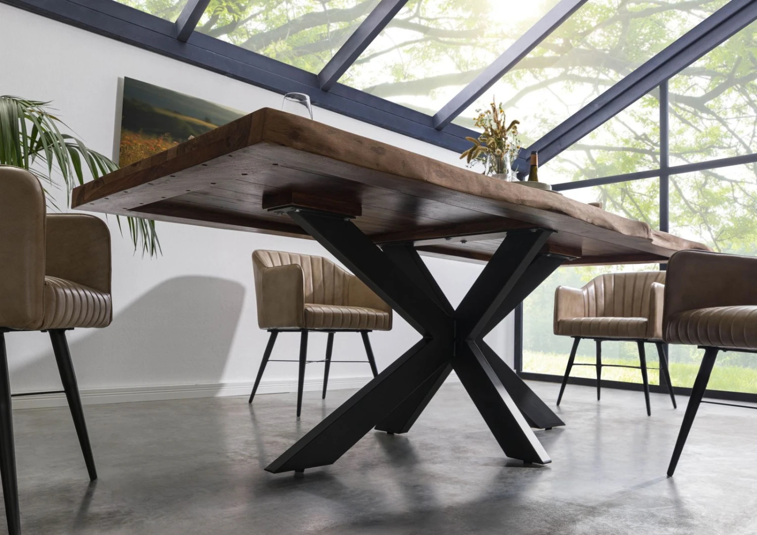 del prodotto FREEFORM 5 Tavolo da pranzo in legno di sheesham – decapato / grigio – gambe ad X argento matt 220×100