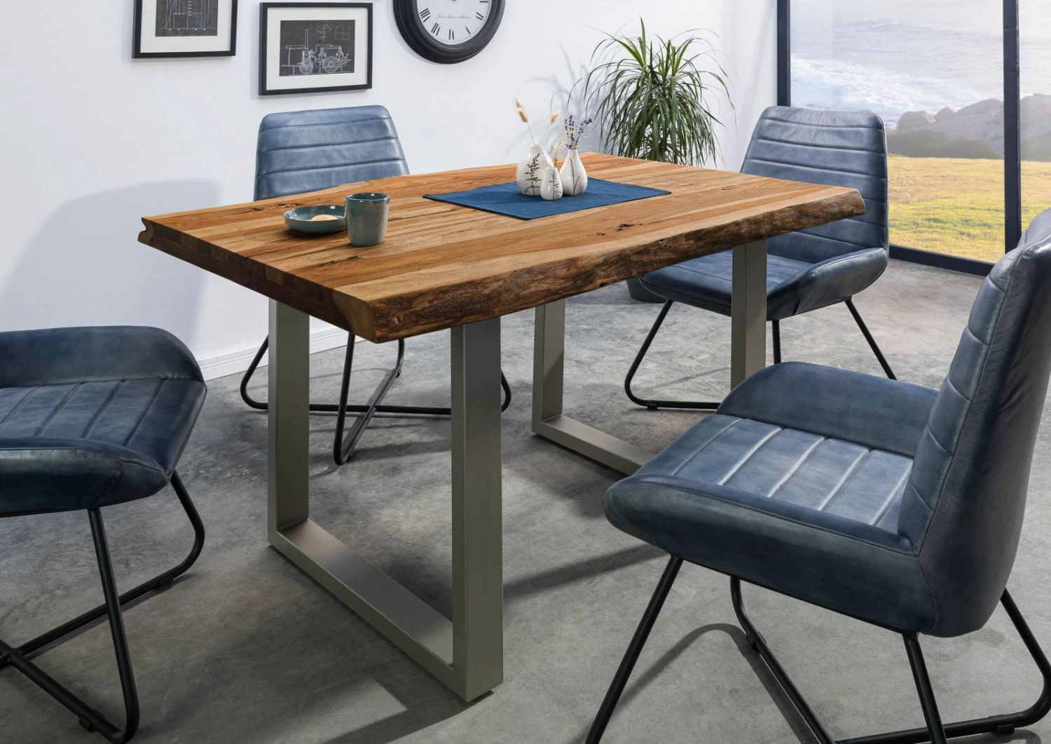del prodotto FREEFORM 5 tavolo da pranzo in legno di sheesham – sabbiato natur / gambe in ferro U argento matt 160×90