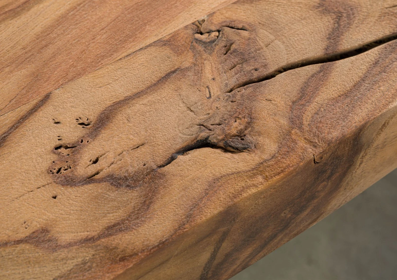 - Tavolo da 260 cm realizzato in legno di sheesham con bordo a tronco d’albero e gambe a X