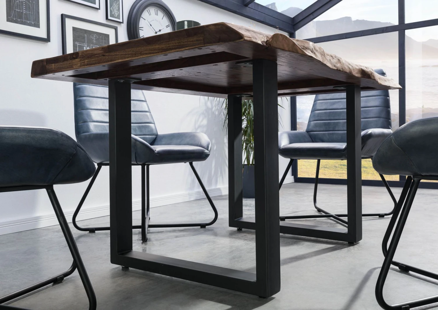 La moderna base a slitta in robusto ferro non solo garantisce una tenuta sicura per il bellissimo piano, ma crea anche un emozionante contrasto con l’aspetto rustico del legno massiccio. Grazie al suo design contemporaneo, questo tavolo può essere abbinato a un’ampia varietà di stili di arredamento. È un vero e proprio pezzo forte per il soggiorno, la cucina o la sala da pranzo!