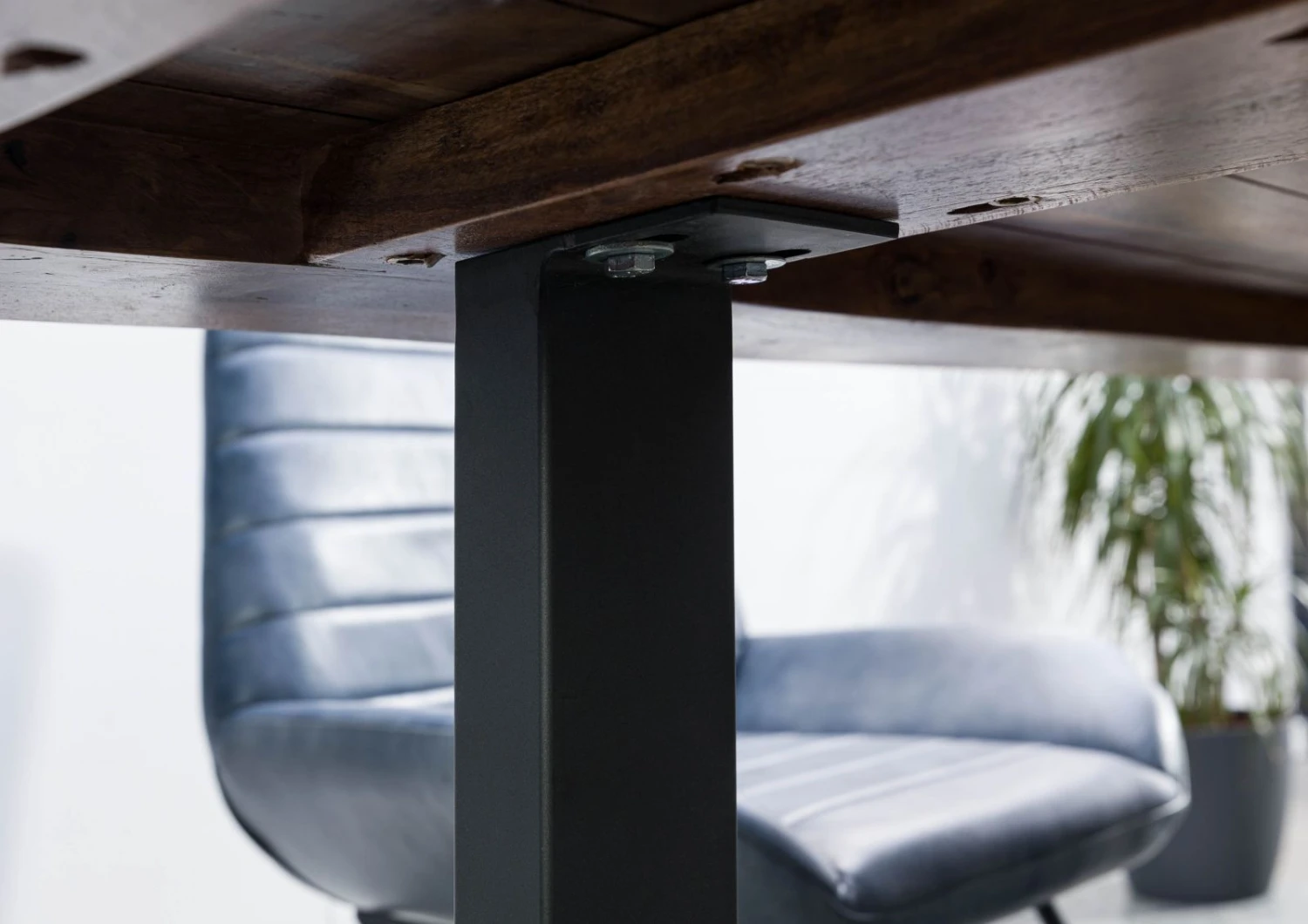 Questo tavolo combina due materiali ricercati per creare un risultato unico. L’elemento di spicco è il piano in legno massiccio di sheesham. Questo è dovuto anche alla tinta grigia che accentua ancora di più lo straordinario gioco di colori. I bordi lunghi conservano la silhouette originale dell’albero, come era concepita dalla natura, celebrando così l’individualità di ogni tronco.