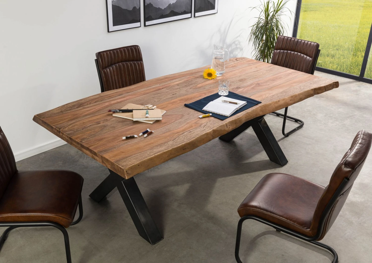 Questi conservano la naturale silhouette dell’albero e sono un vero e proprio segno distintivo. In combinazione con le gambe a forma di X, il tavolo ha uno stile industriale davvero trendy. Non c’è dubbio: questo tavolo in legno di sheesham aggiunge alla sala da pranzo un vero tocco di classe!