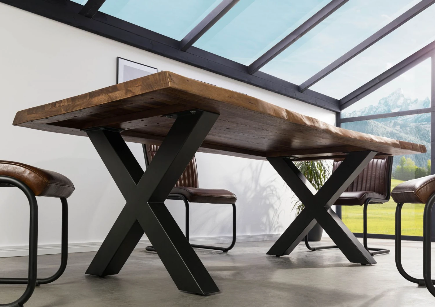 Questi conservano la naturale silhouette dell’albero e sono un vero e proprio segno distintivo. In combinazione con le gambe a forma di X, il tavolo ha uno stile industriale davvero trendy. Non c’è dubbio: questo tavolo in legno di sheesham aggiunge alla sala da pranzo un vero tocco di classe!