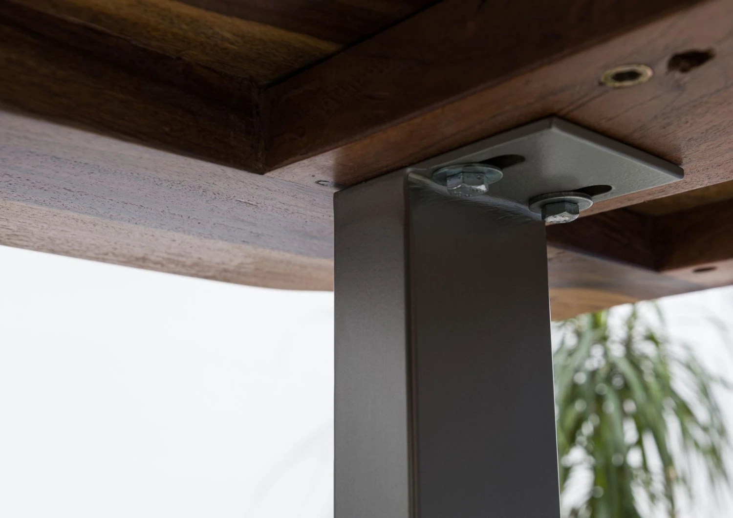 - Tavolo da 160 cm realizzato in legno di sheesham naturale verniciato con bordo a tronco d’albero