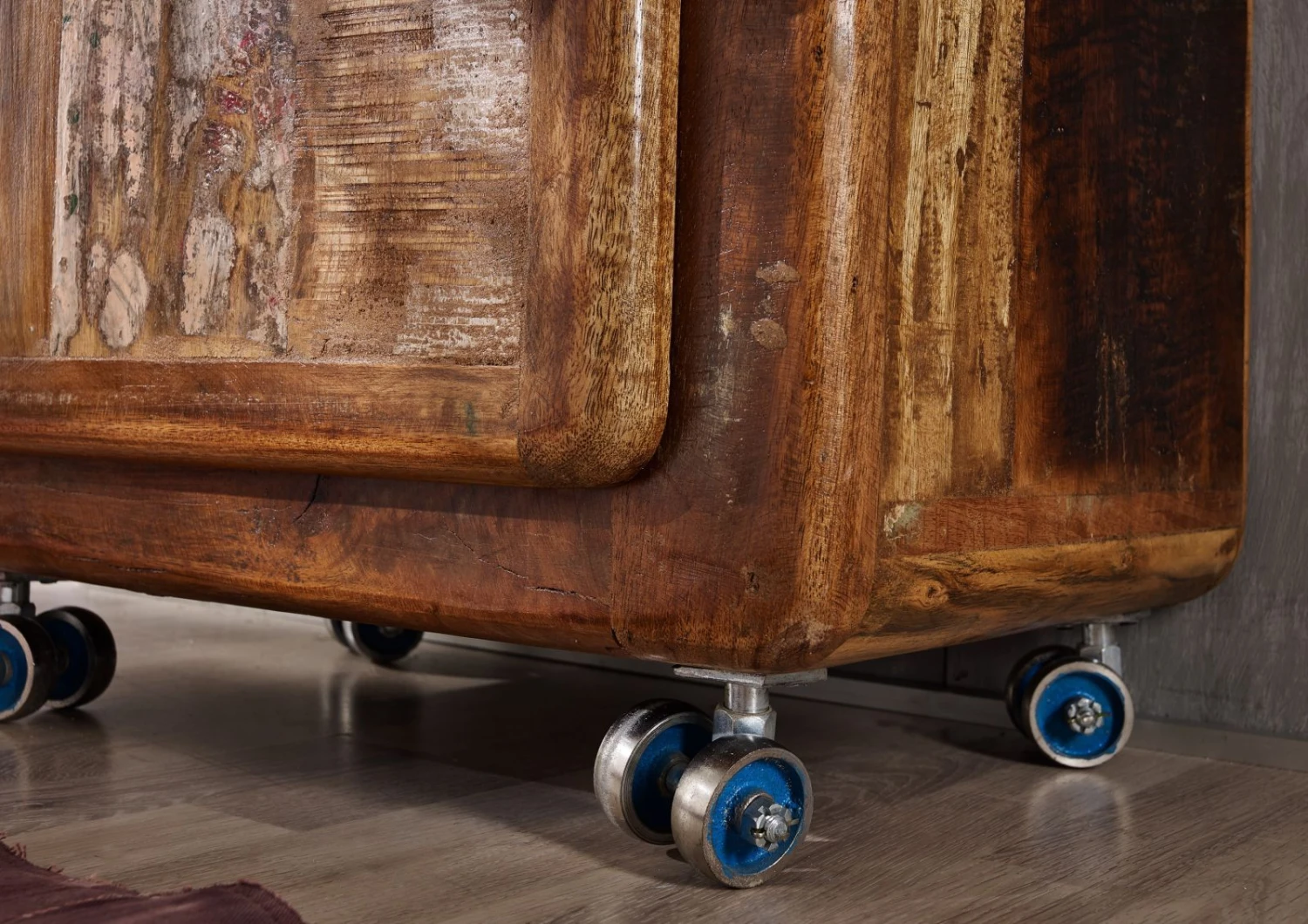 Questa scelta insolita di materiali, rende questo mobile un pezzo di arredamento speciale che spicca in modo impressionante fra tutti gli altri, ed ecco che potrete ritrovare vecchie tracce e segni di usura, che creeranno un ambiente dal tocco nostalgico.