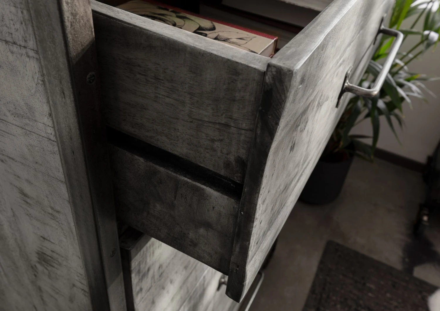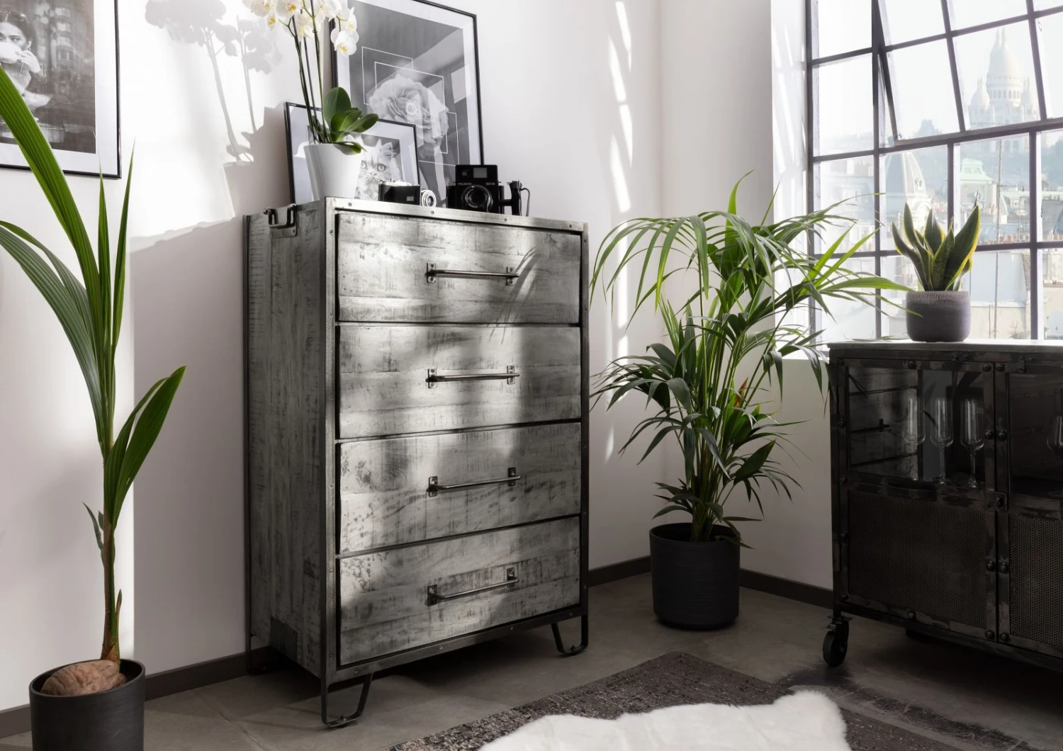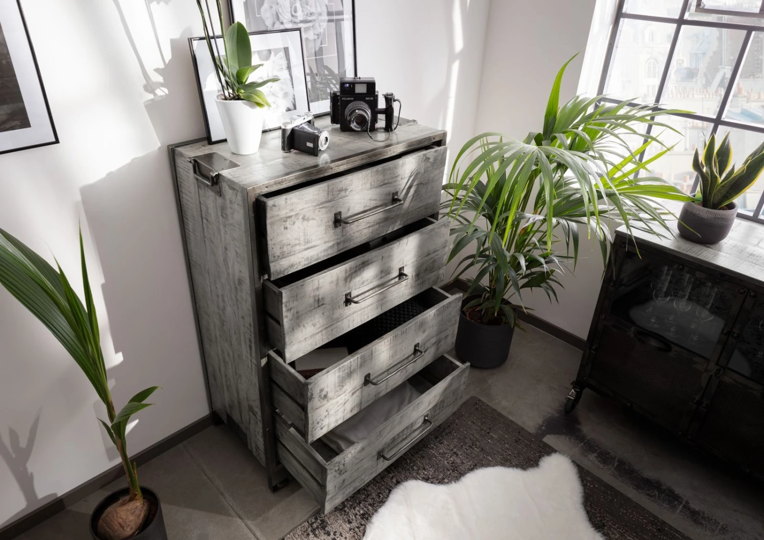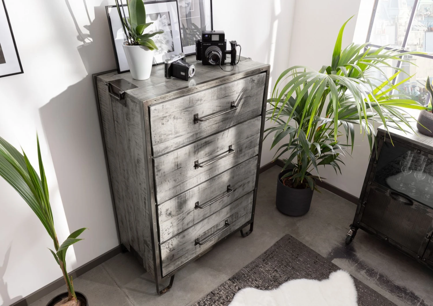 del prodotto HEAVY INDUSTRY #117 Cassettiera legno di mango e ferro – laccato grigio – 81x46x122