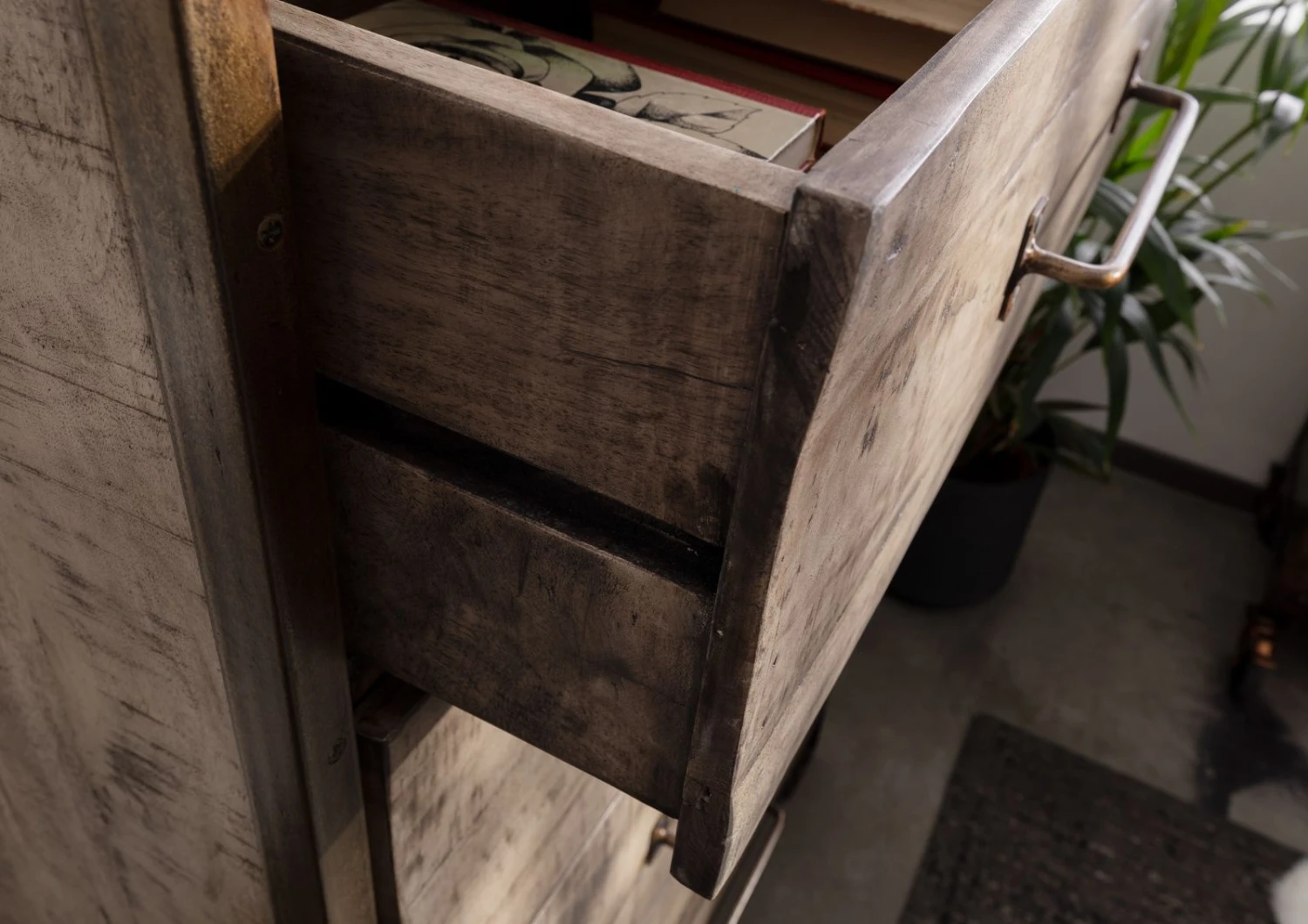 del prodotto HEAVY INDUSTRY #217 Cassettiera in legno di mango e ferro – laccato marrone – 81x46x122