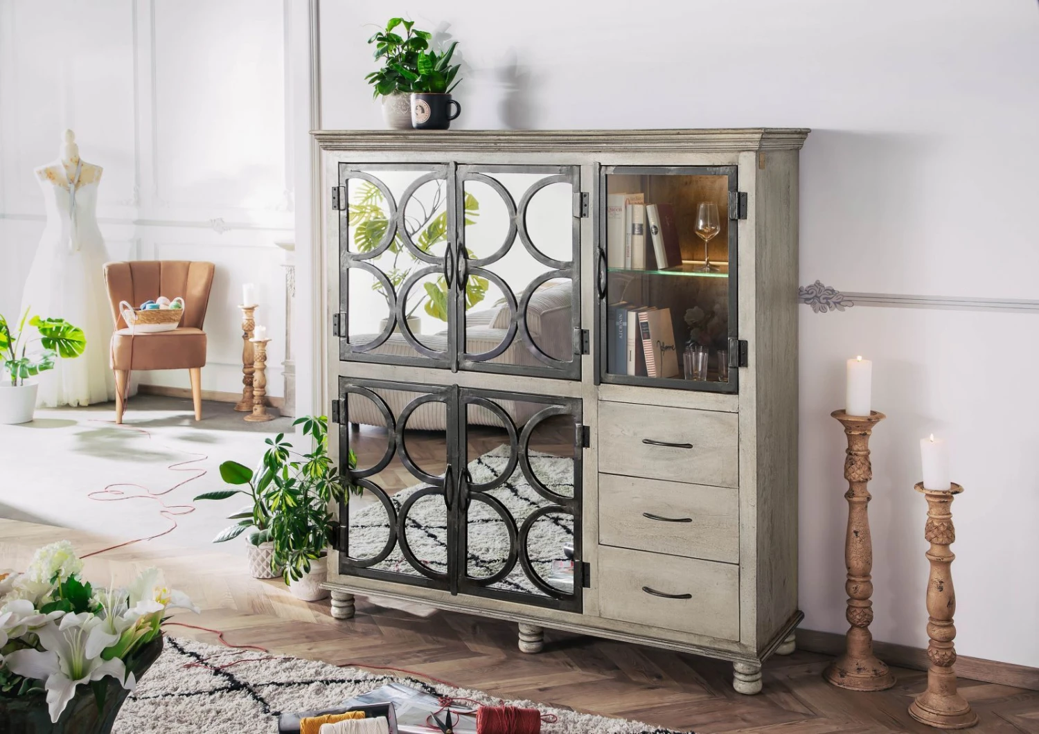del prodotto HERMITAGE #015 Vetrina in legno di mango – laccato / grigio 150x45x160