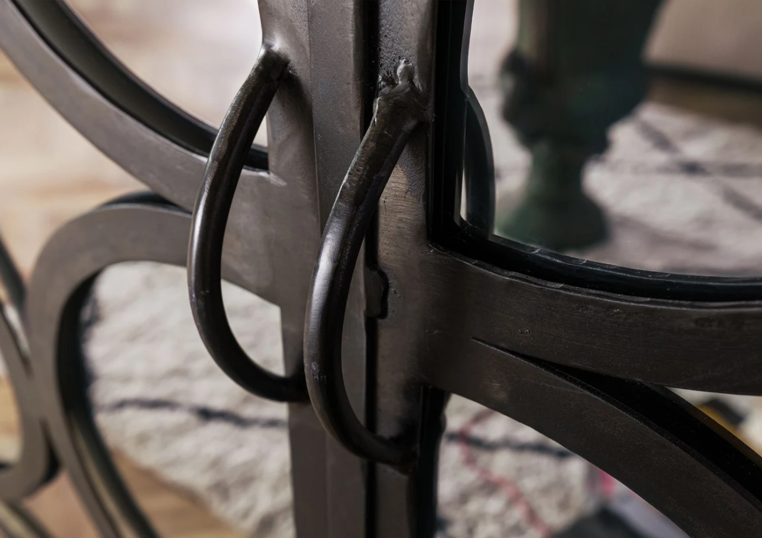 - Le ante a specchio con decorazioni in ferro ricordano il gusto art déco.