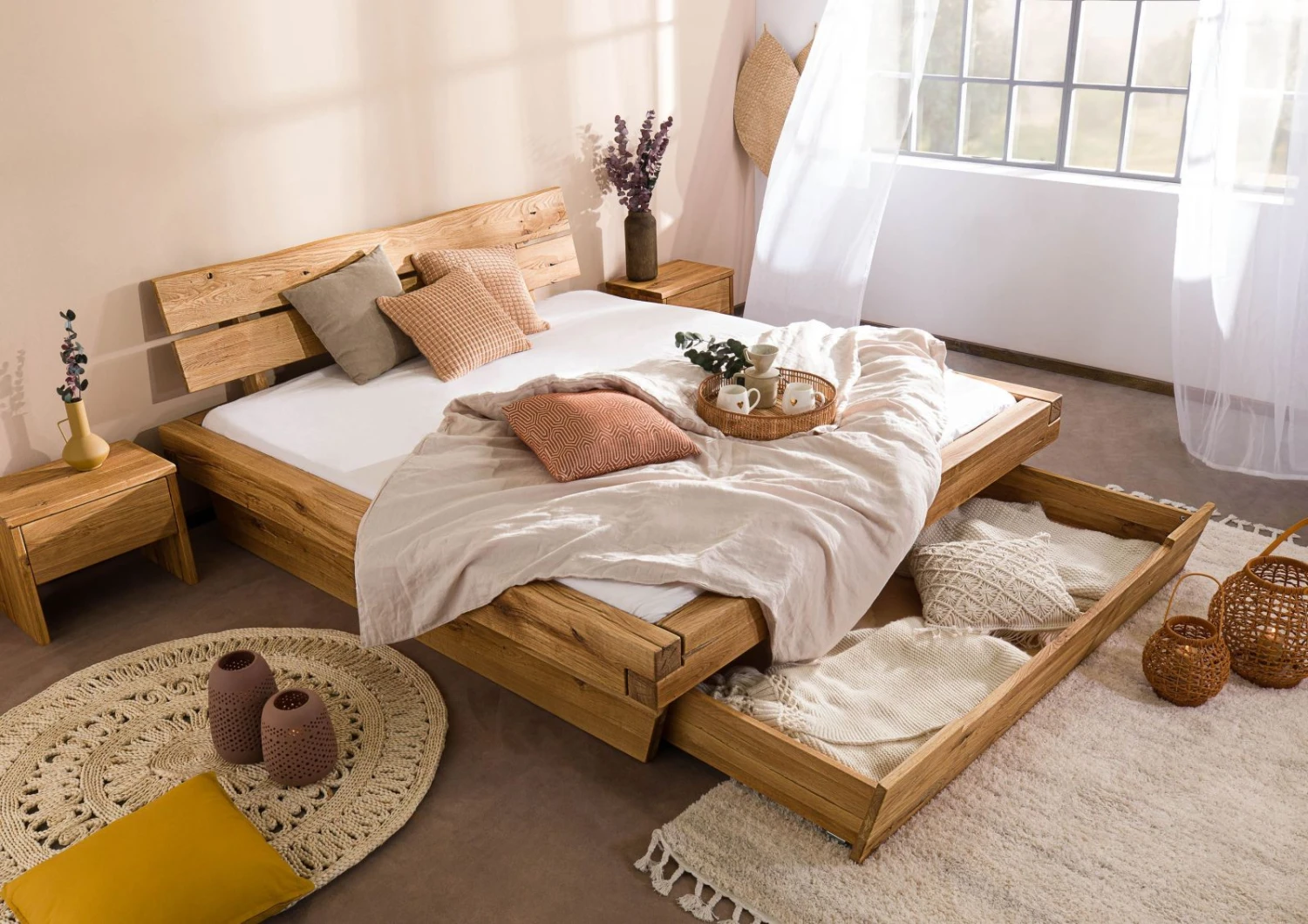del prodotto INNSBRUCK #280 Letto a travi in legno di quercia selvatica – con cassettone – oliato / natur 180×200