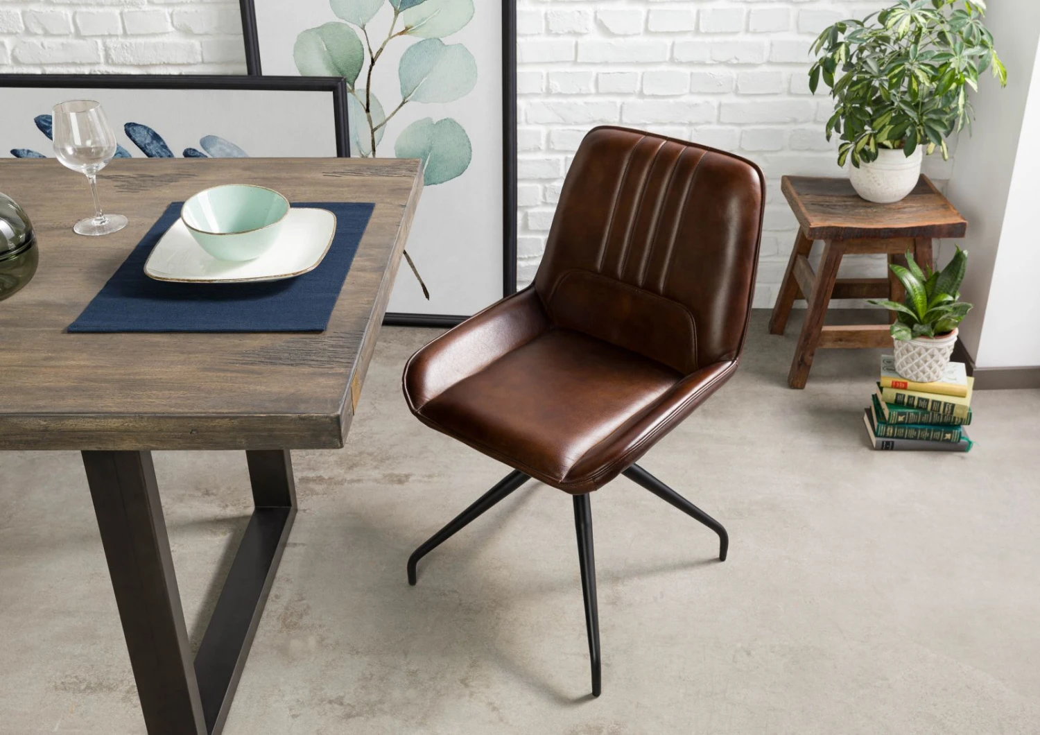 Per atmosfere lounge di classe: la sedia con rivestimento in pelle marrone