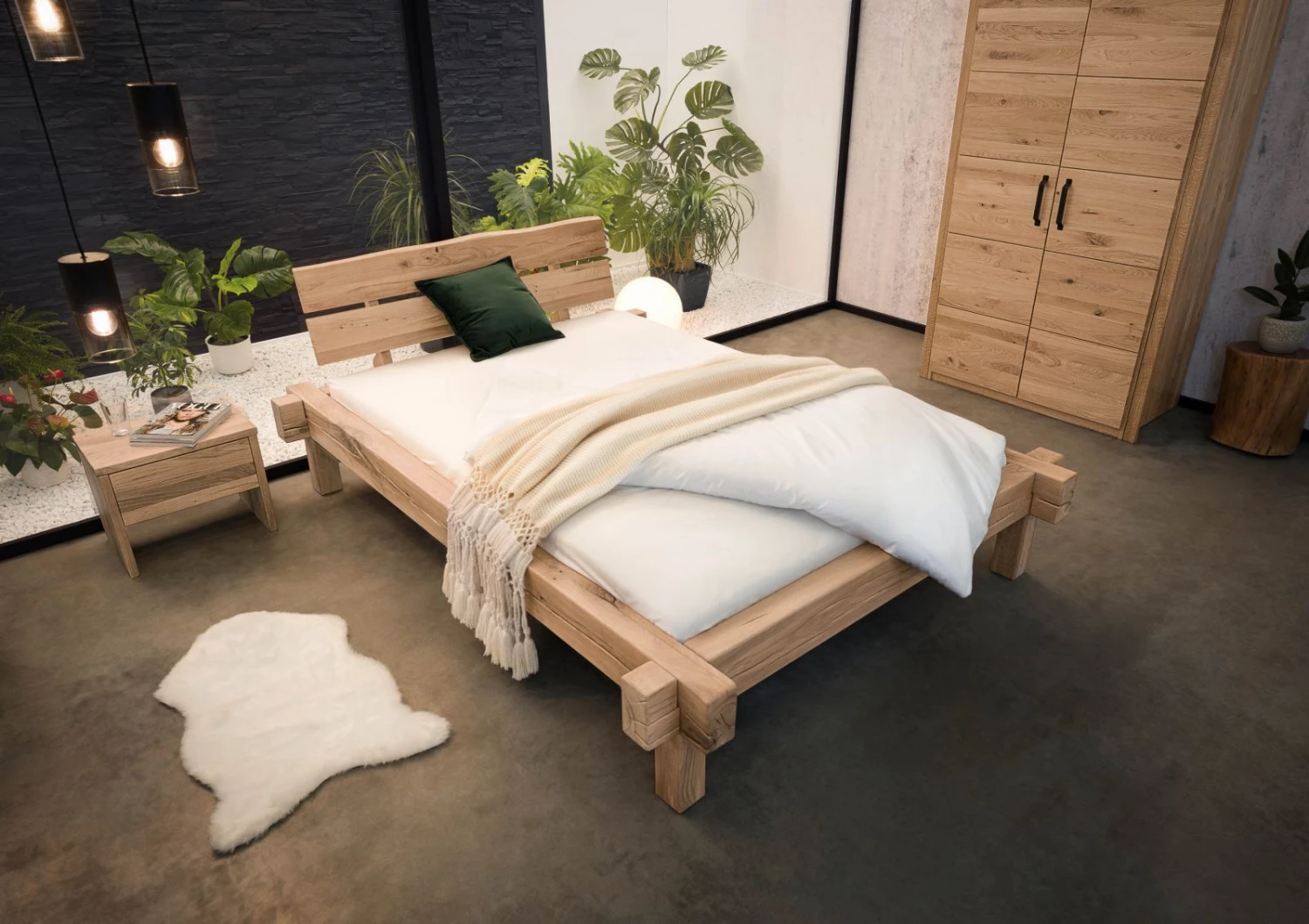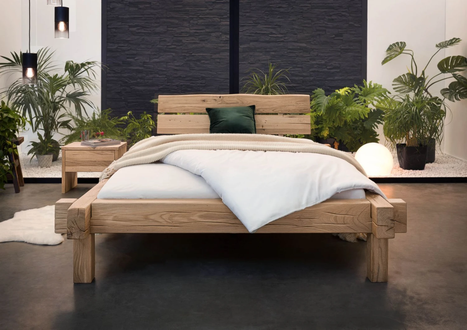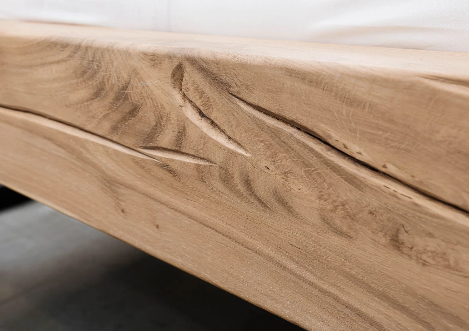 del prodotto JANGALI #111 Letto matrimoniale a travi in legno di quercia selvatica – oliato / bianco 160×200