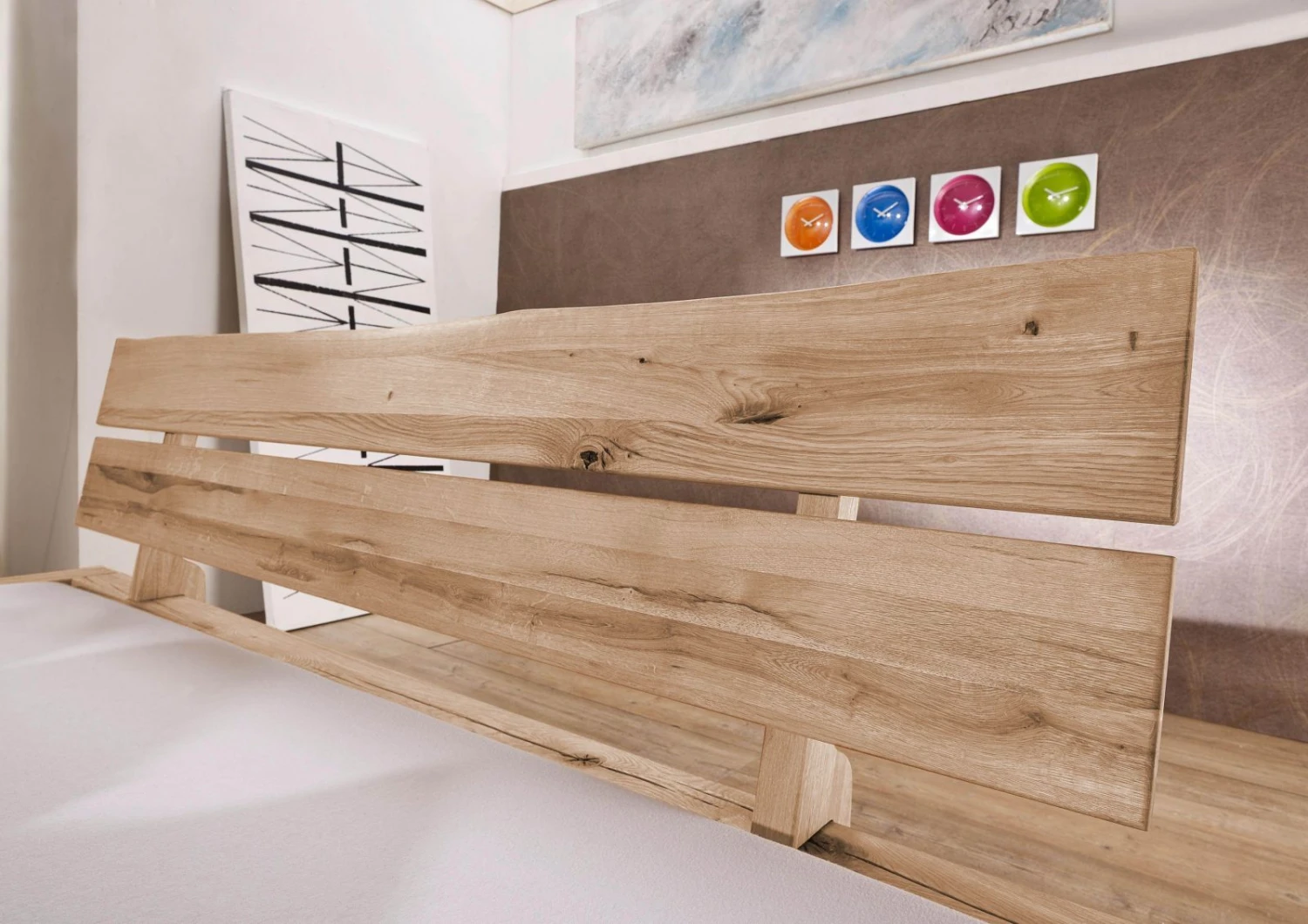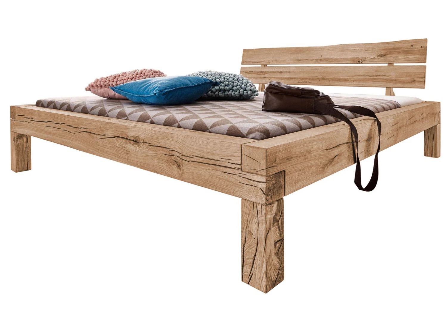 del prodotto JANGALI #210 Letto matrimoniale a travi in legno di quercia selvatica – oliato / bianco 140×200