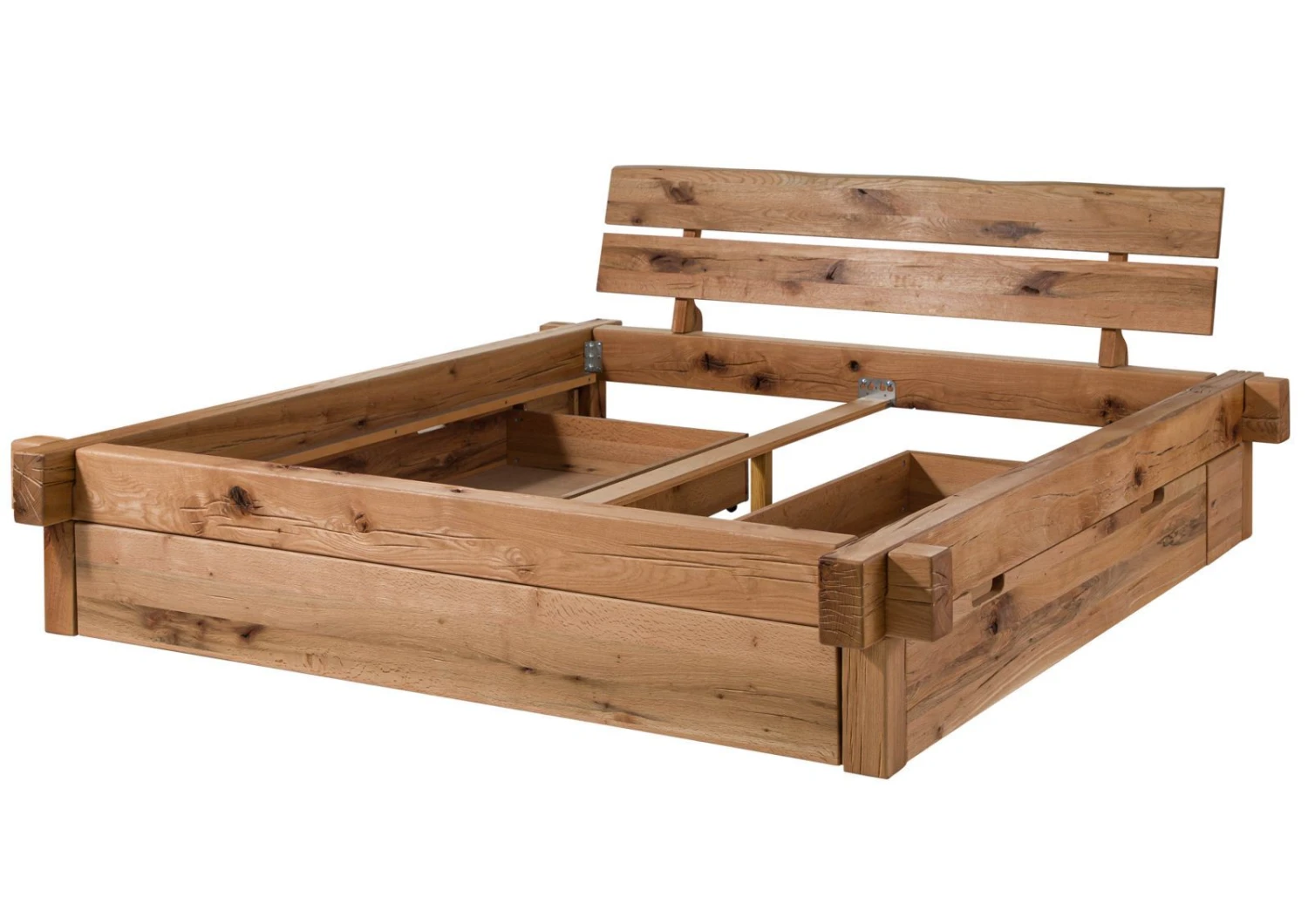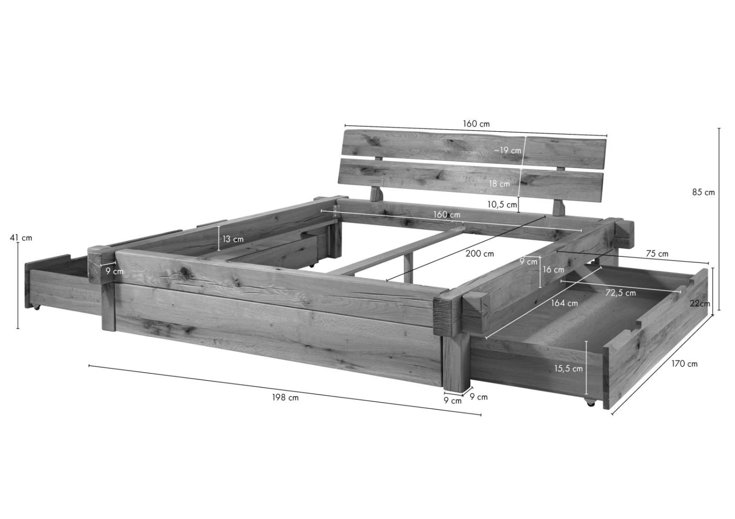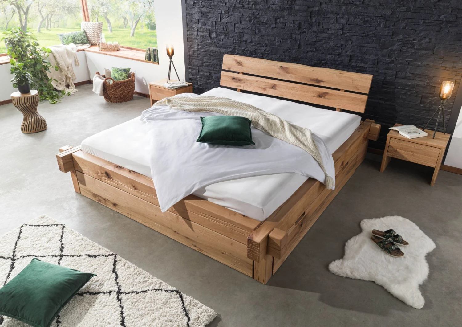 del prodotto JANGALI #629 Letto matrimoniale a travi in legno di cerro – 2 cassetti – oliato / natur 160×200